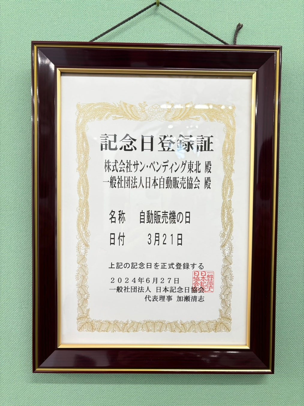 一般社団法人日本自動販売協会と株式会社サン・ベンディング東北が共同で制定。