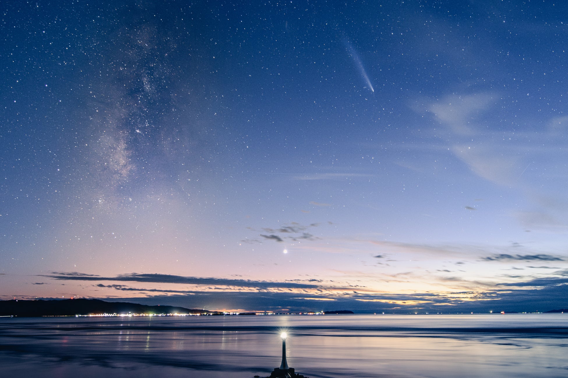 撮影者コメント:「南島原の夜空に広がる天の川と「紫金山・アトラス彗星(C/2023 A3)と金星、海を照らし続ける瀬詰崎灯台の光が重なる瞬間を写しました。何万年も前の星の光と、今を生きる私たちの営みが、同じ場所で静かに交わっていることに心を打たれました。この岬が、これからも人と時間を導く存在であり続けてほしいという思いを込めています。」