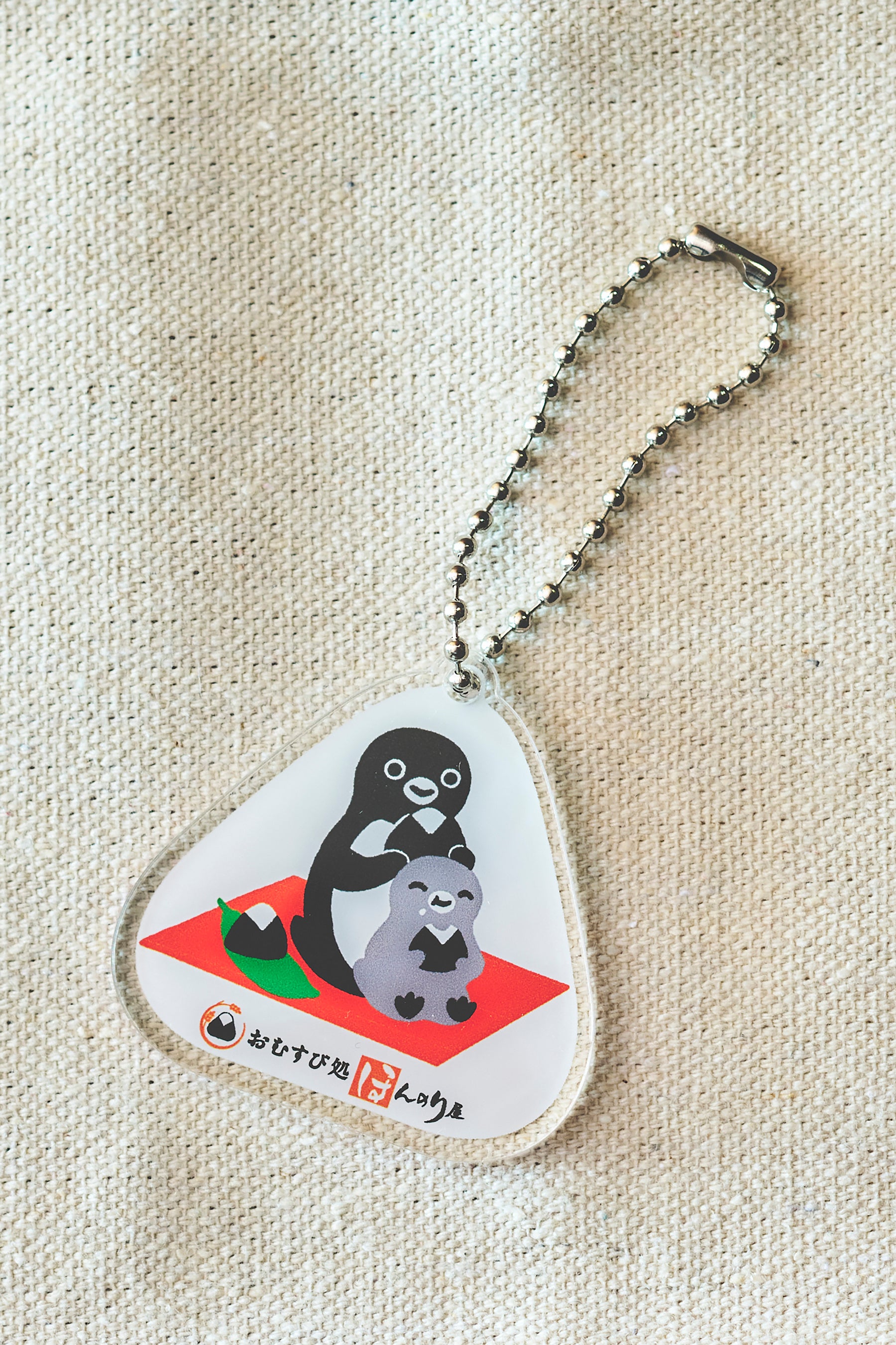 ノベルティは、ステッカーとアクリルキーホルダーの2種類をご用意しました。デザインはステッカーとアクリルキーホルダーで共通となっており、Suicaのペンギンたちが美味しそうにおむすびを食べている、ほんのり屋ならではのかわいらしいデザインです。数量限定のため、なくなり次第終了となります。