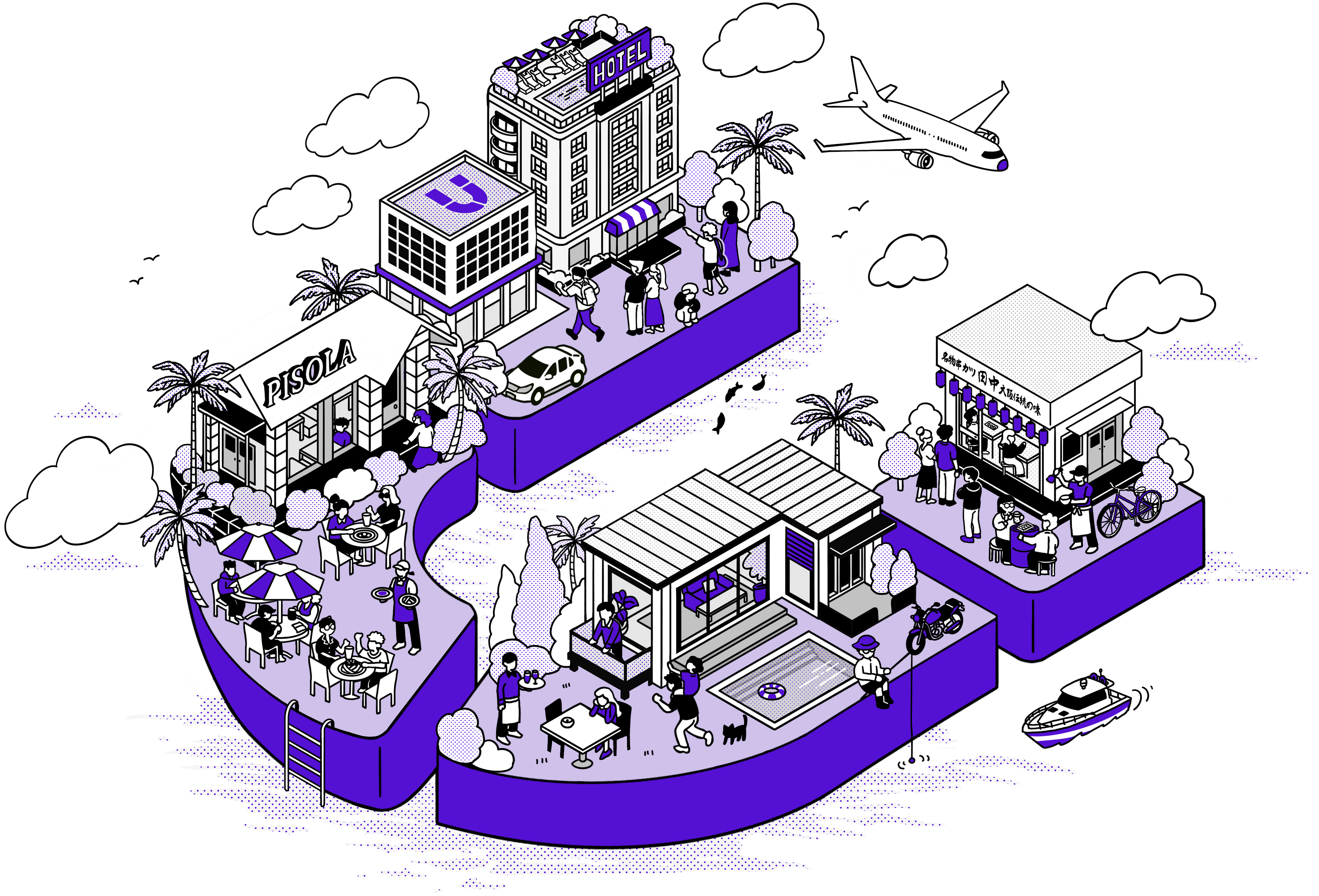 クラフトレストランチェーンの「PISOLA」、インバウンド業態の「天のめしブランド」、デザイン制作を担う「UKYE」など、全く異なる個性を持つ多角的なブランド展開が加速する中で、多様な事業と人材が「ひとつ」のチームとなり、広い世界へ漕ぎ出していく強い意志の表れです。