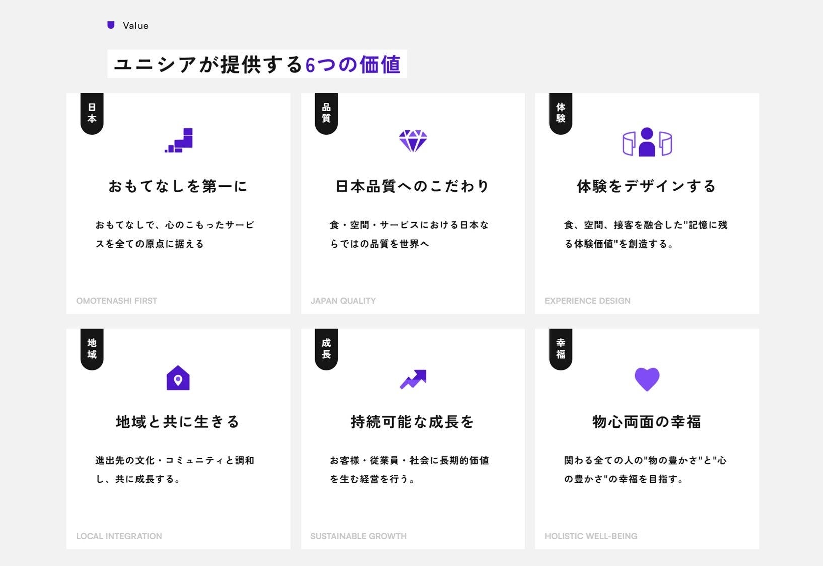 ユニシアは6つの価値を提供します。