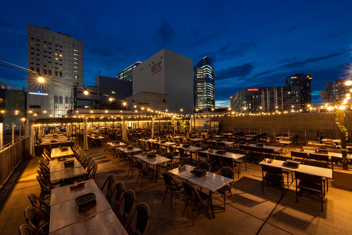 JR川崎駅直結の開放的な屋上テラスには屋根付きエリア併設で、天候を気にせず手ぶらBBQ。お仕事帰りやショッピングの合間に、いち早くシーズンの訪れを感じていただけます。