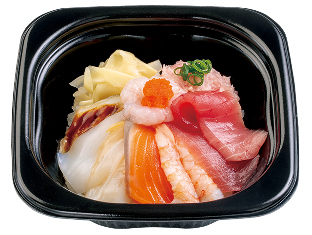 (まぐろ、びん長まぐろ、サーモン、えび、いか、玉子、いくら、特盛ねぎとろ)