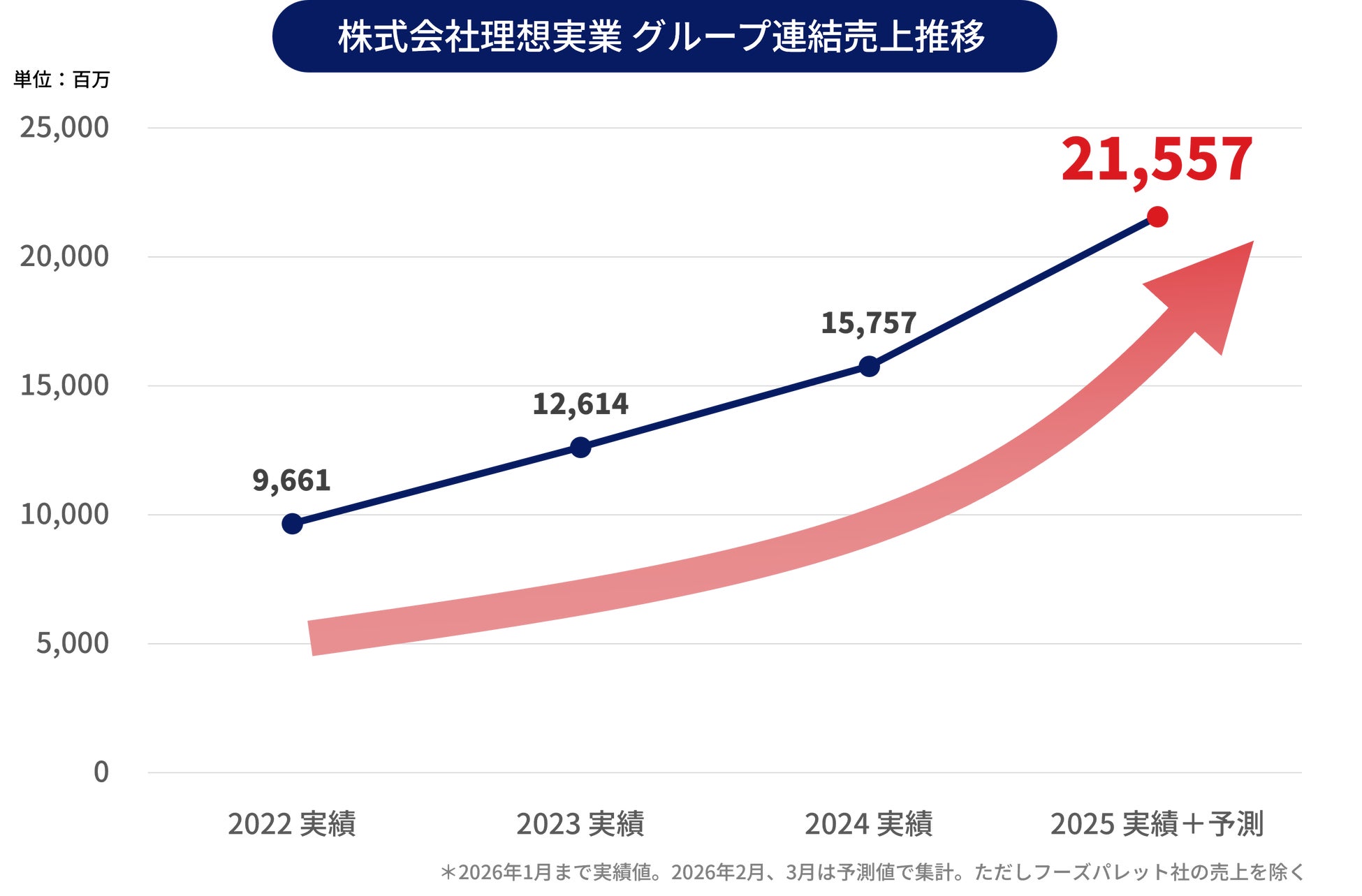 ※1 2026年1月まで実績値。2026年2月、3月は予測値で集計。ただしフーズパレット社の売上を除く