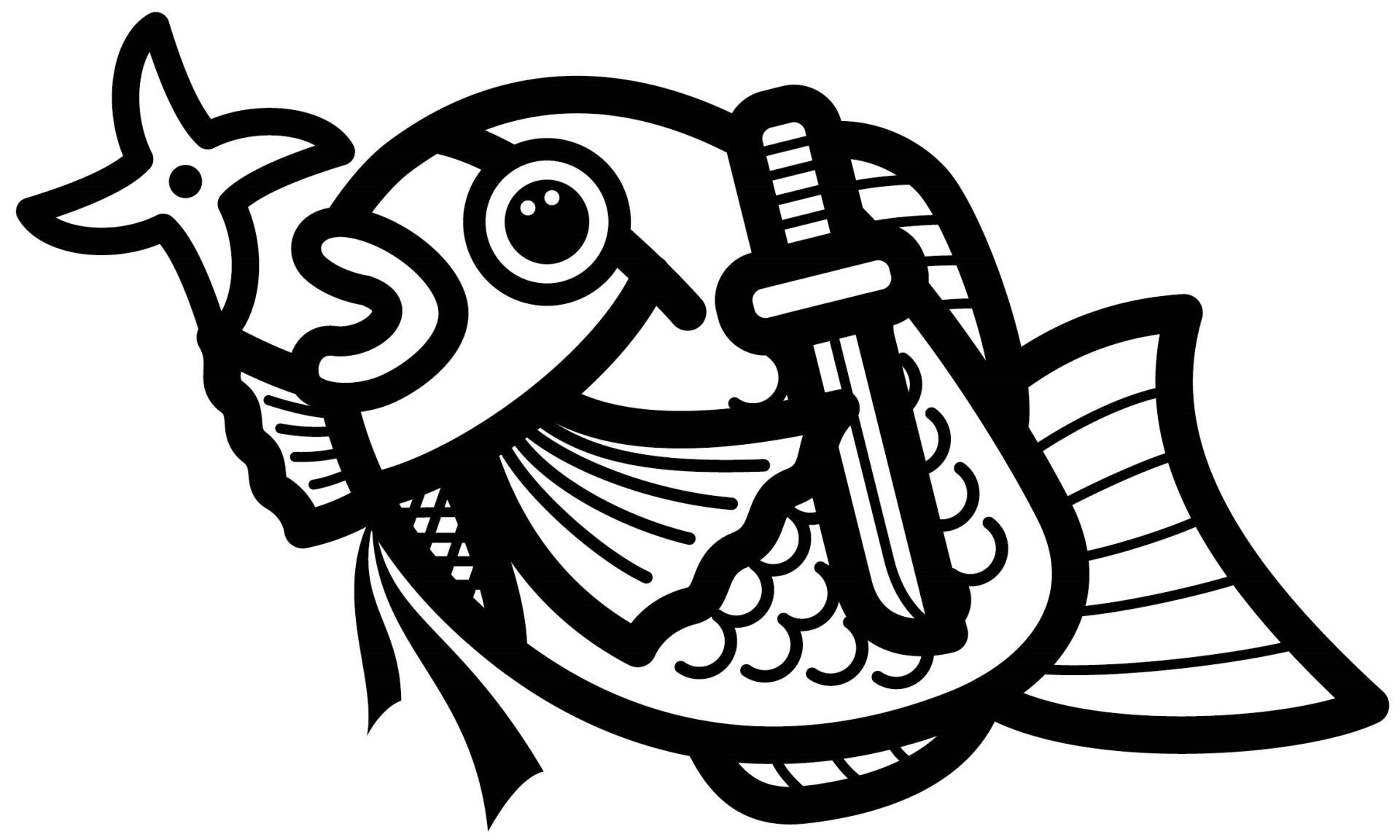・甲賀忍者をモデルにした、刀や手裏剣を持ったオリジナルデザイン
