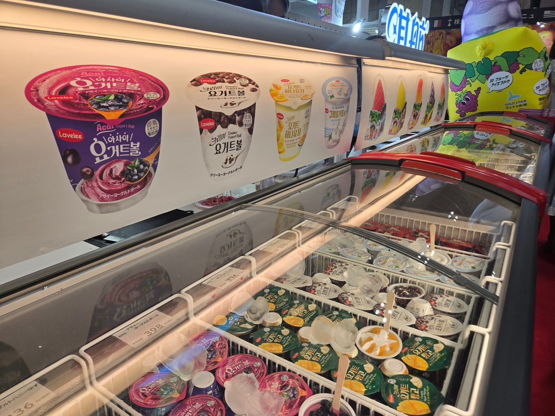 Gold Starのブースでは、SNSでも話題となっている 立体形状のフルーツアイス「3Dフルーツアイス」 を中心に展示を行いました。この商品は、本物のフルーツのような立体デザインと鮮やかな見た目が特徴で、これまでに 累計300万個以上 を販売している人気商品です。