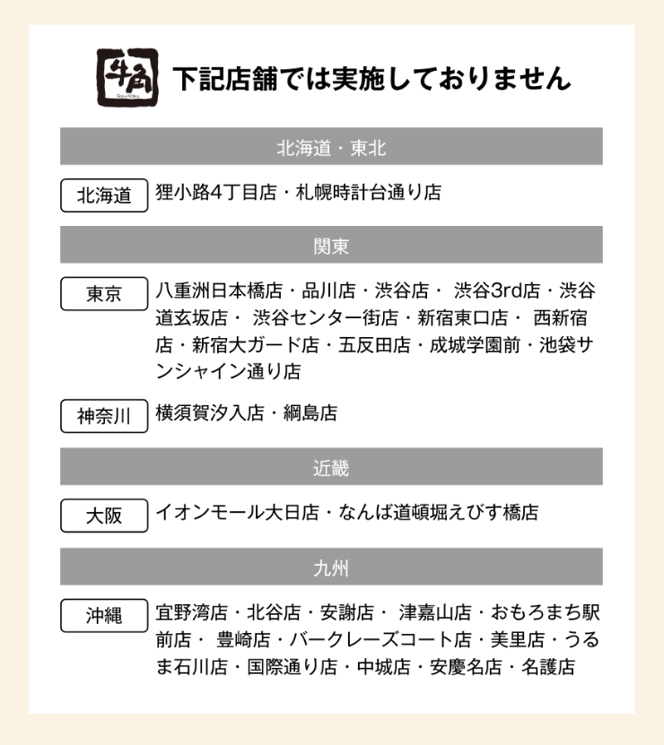 ※牛角焼肉食堂、牛角成城学園前店では実施していません。