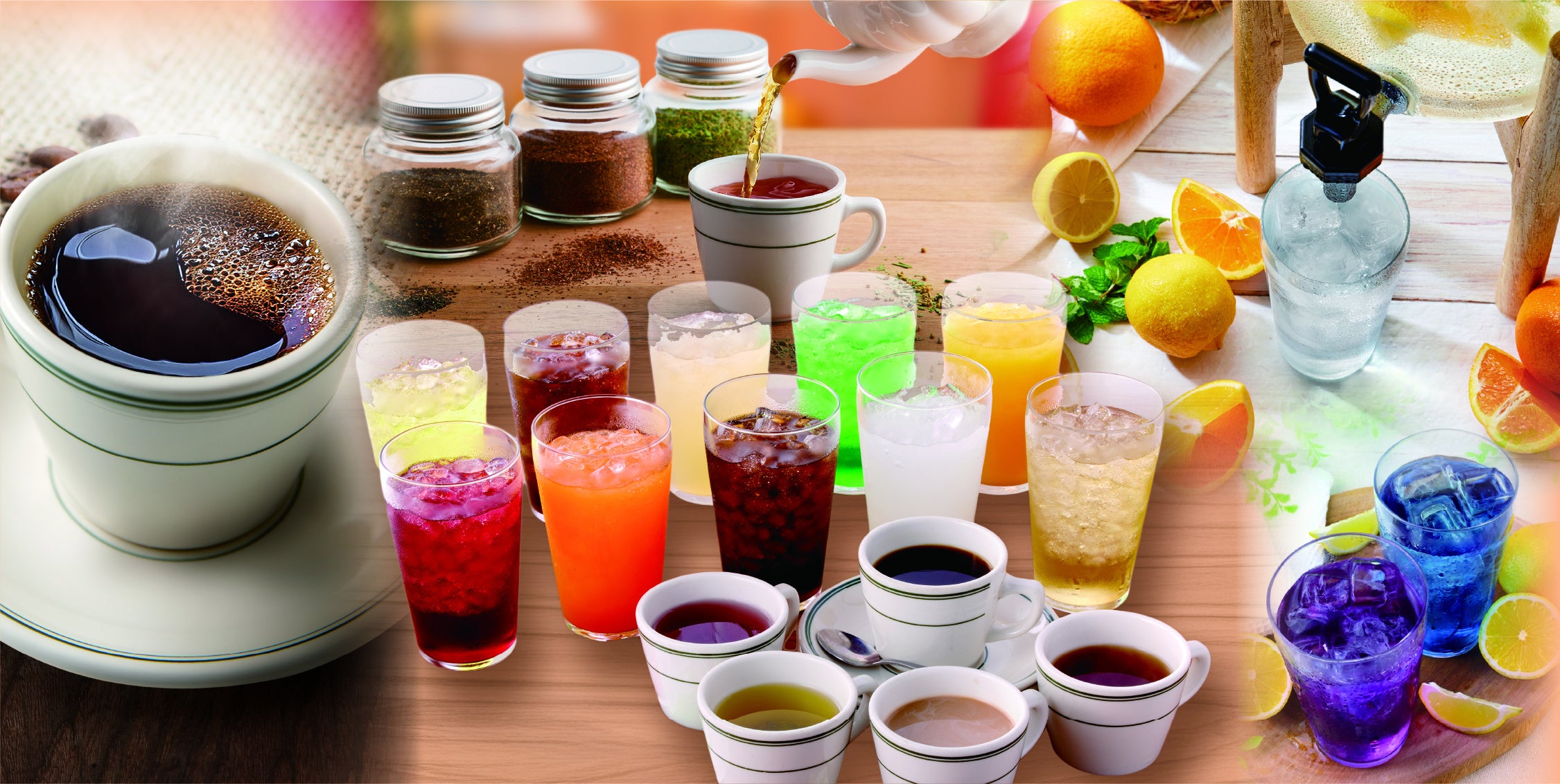 自分のライフスタイルに合わせて、選んで楽しい、見て楽しいドリンクバーとしてラインアップを取り揃えました。
