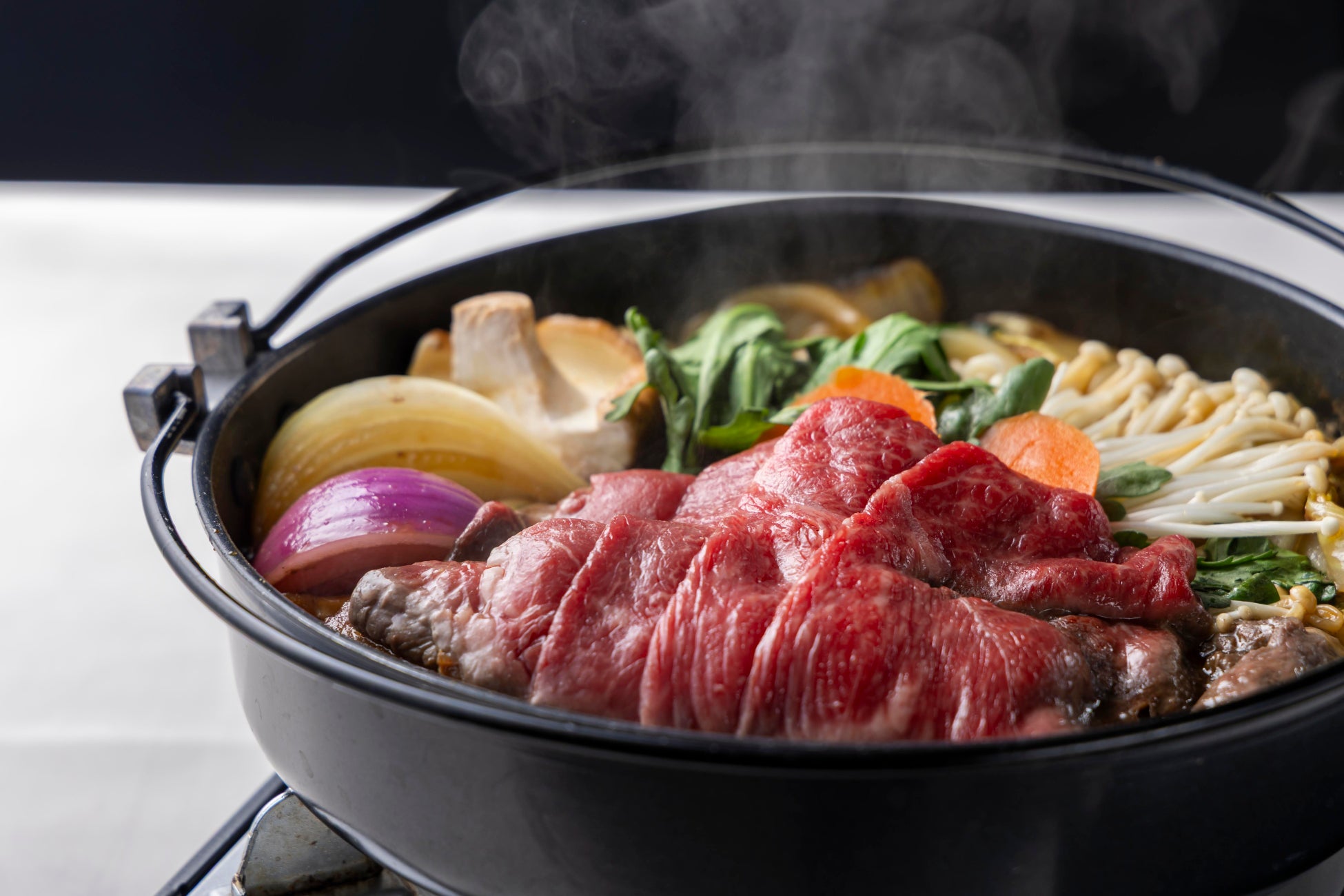 淡路牛と淡路島玉葱、季節の野菜をたっぷり味わう和のごちそうです。 野菜の甘みと牛肉の旨みが重なり合うすき焼きを、〆のうどんまでゆっくりとお楽しみ ください。