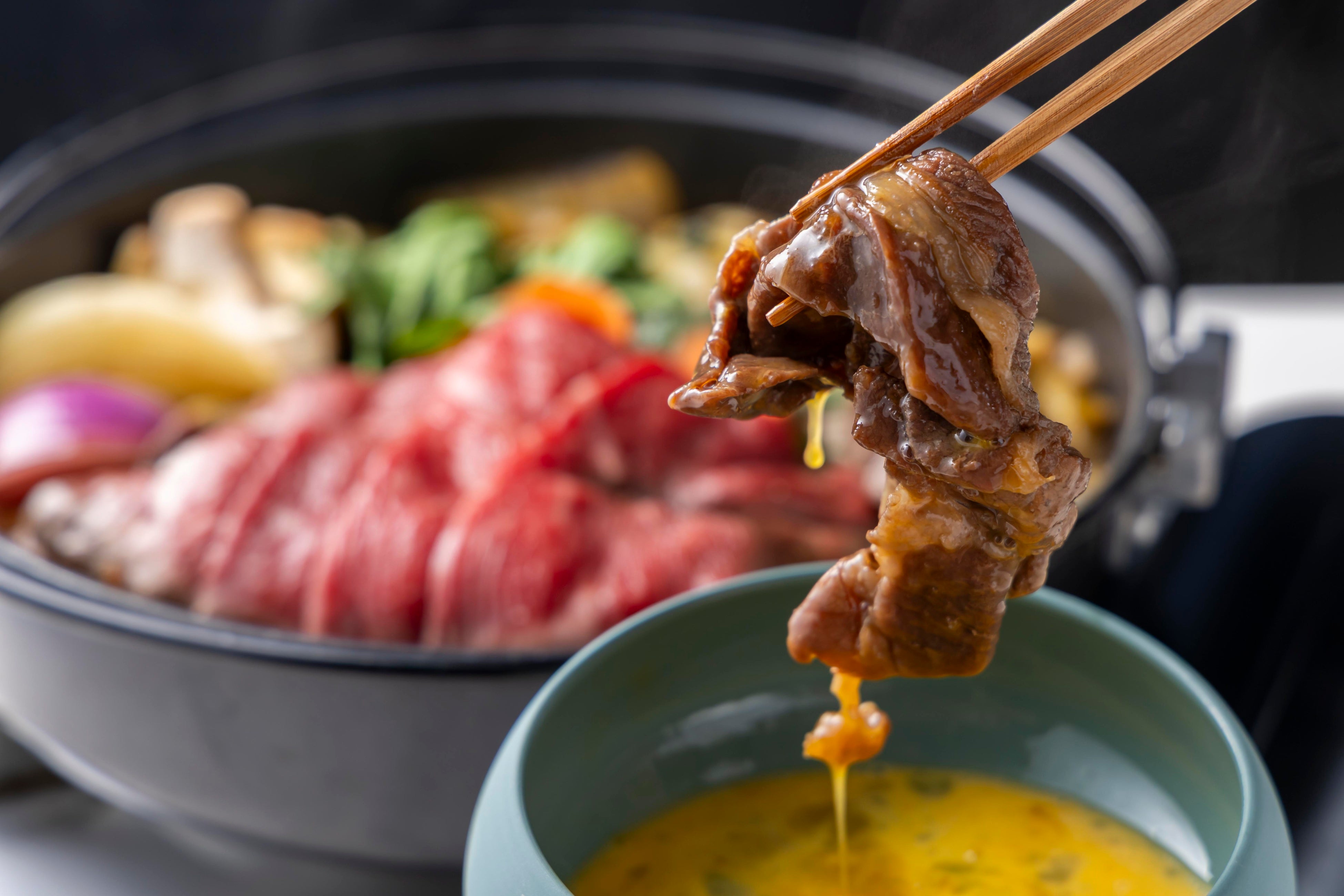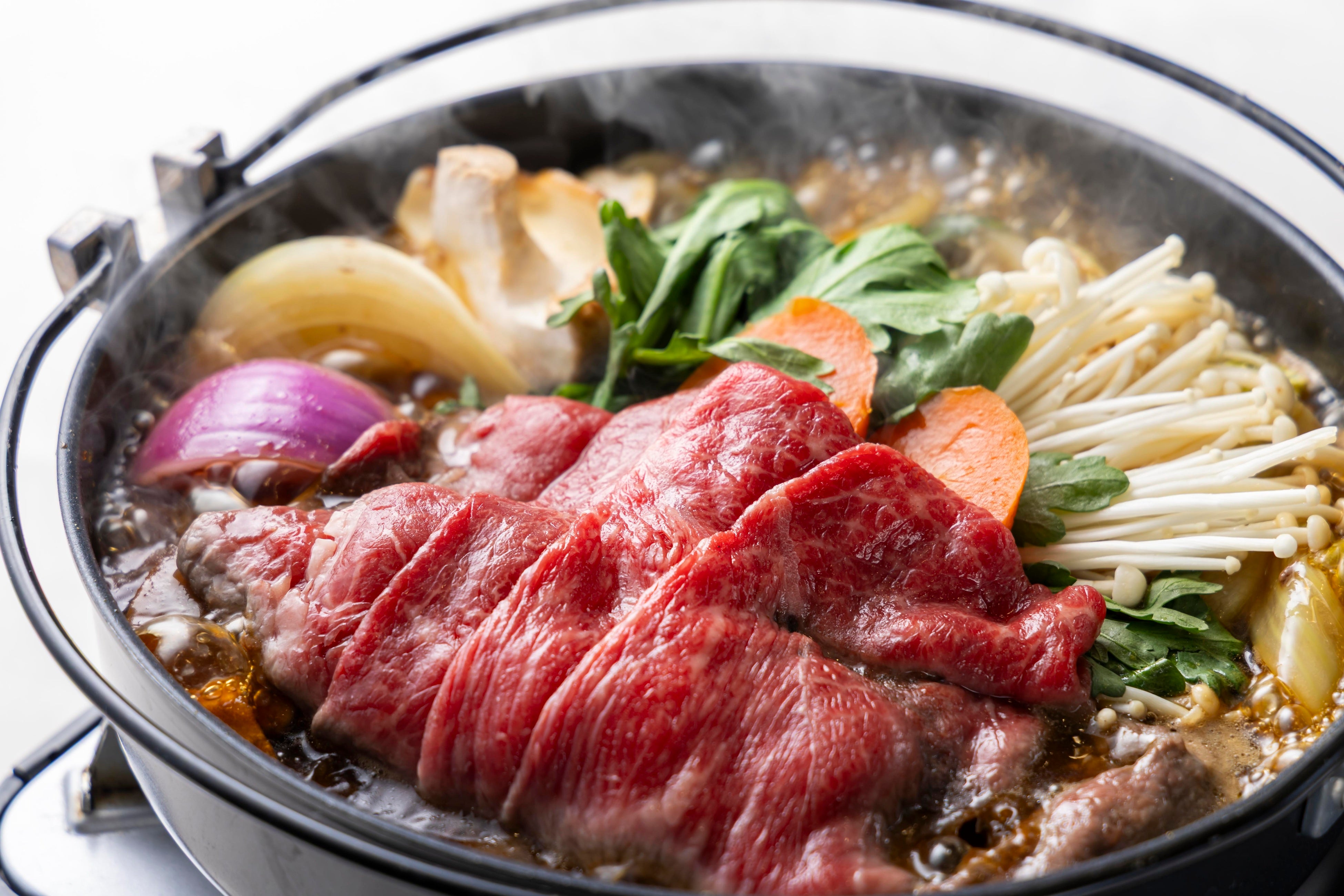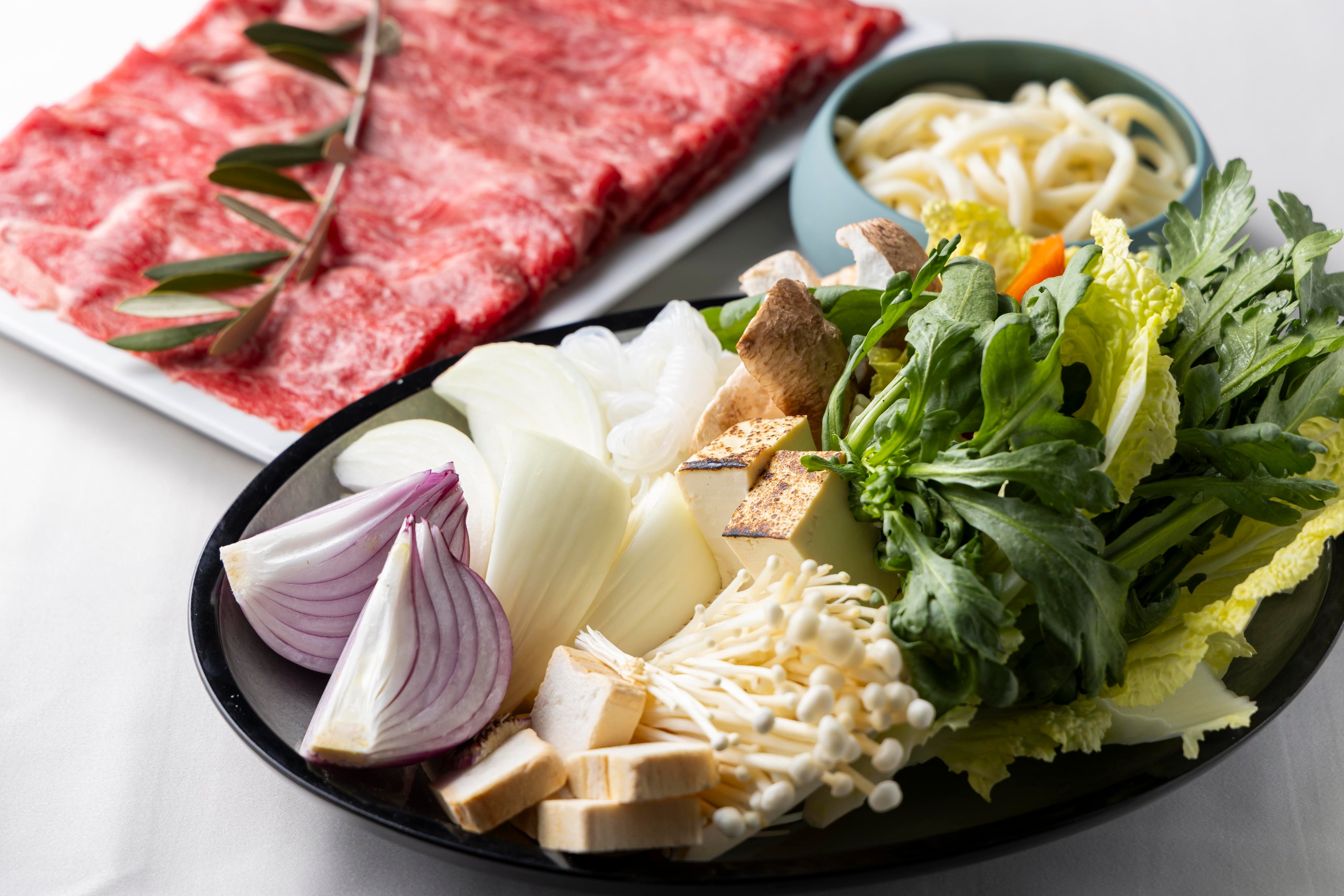淡路牛と淡路島玉葱、季節の野菜をたっぷり味わう和のごちそうです。 野菜の甘みと牛肉の旨みが重なり合うすき焼きを、〆のうどんまでゆっくりとお楽しみ ください。