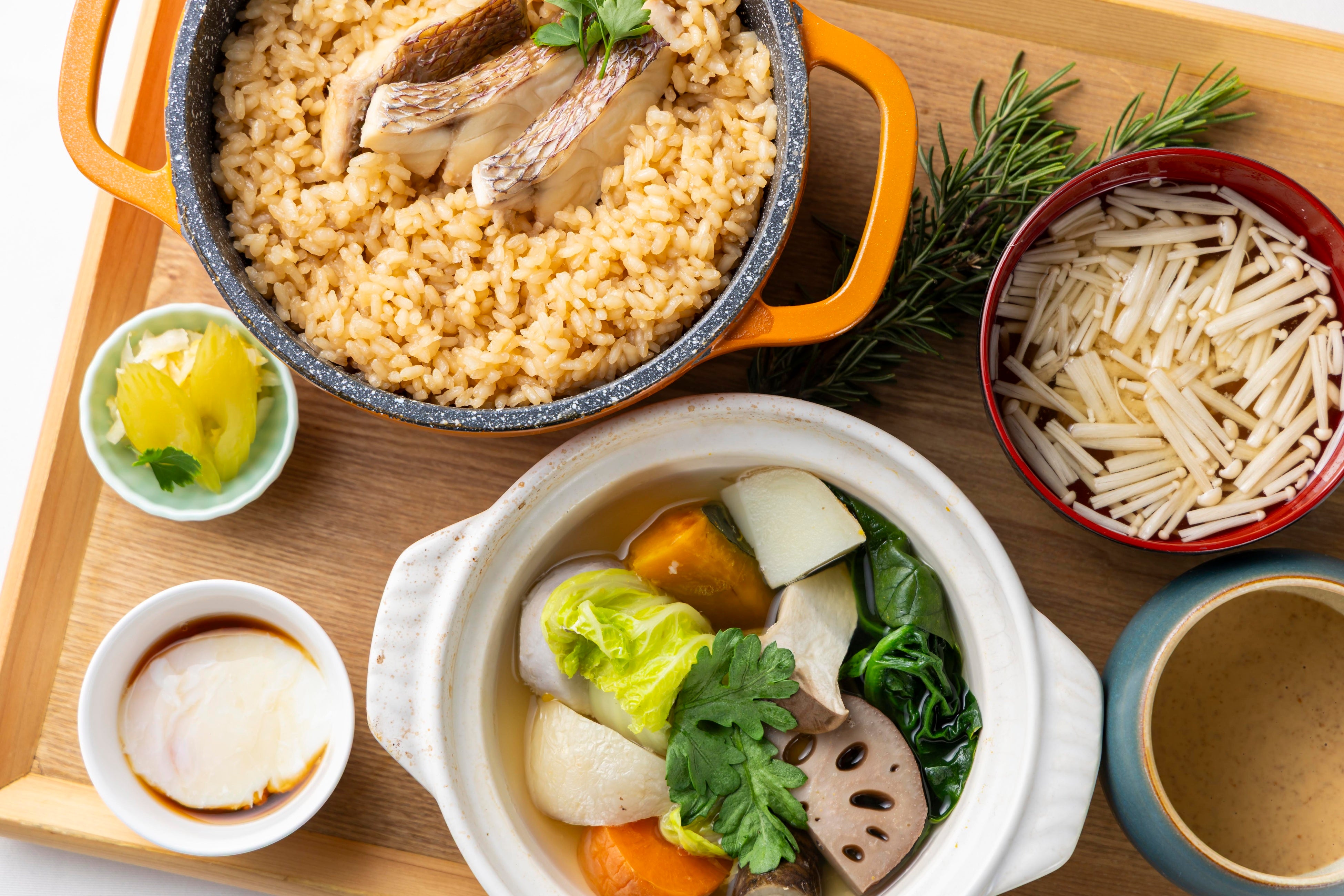 朝食『鯛ごはんの和朝食 バージンバレー農園の野菜たっぷり和ポトフ』