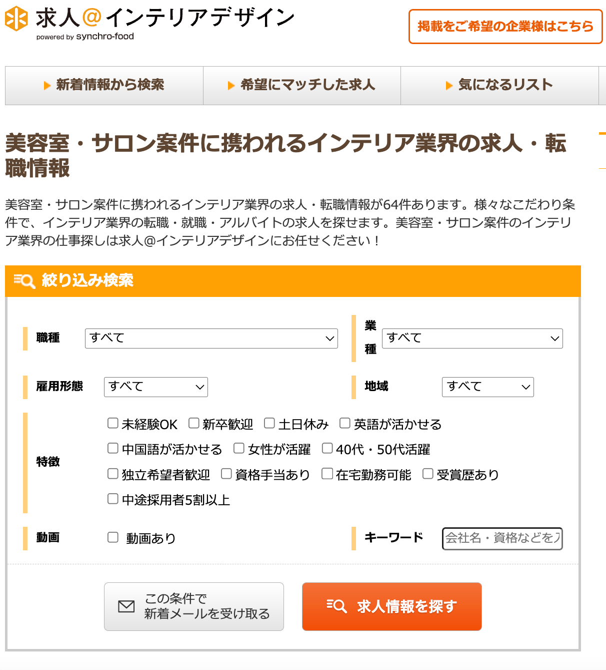 ・インテリア業界や建築業界特化型の求人情報サイト「求人@インテリアデザイン」