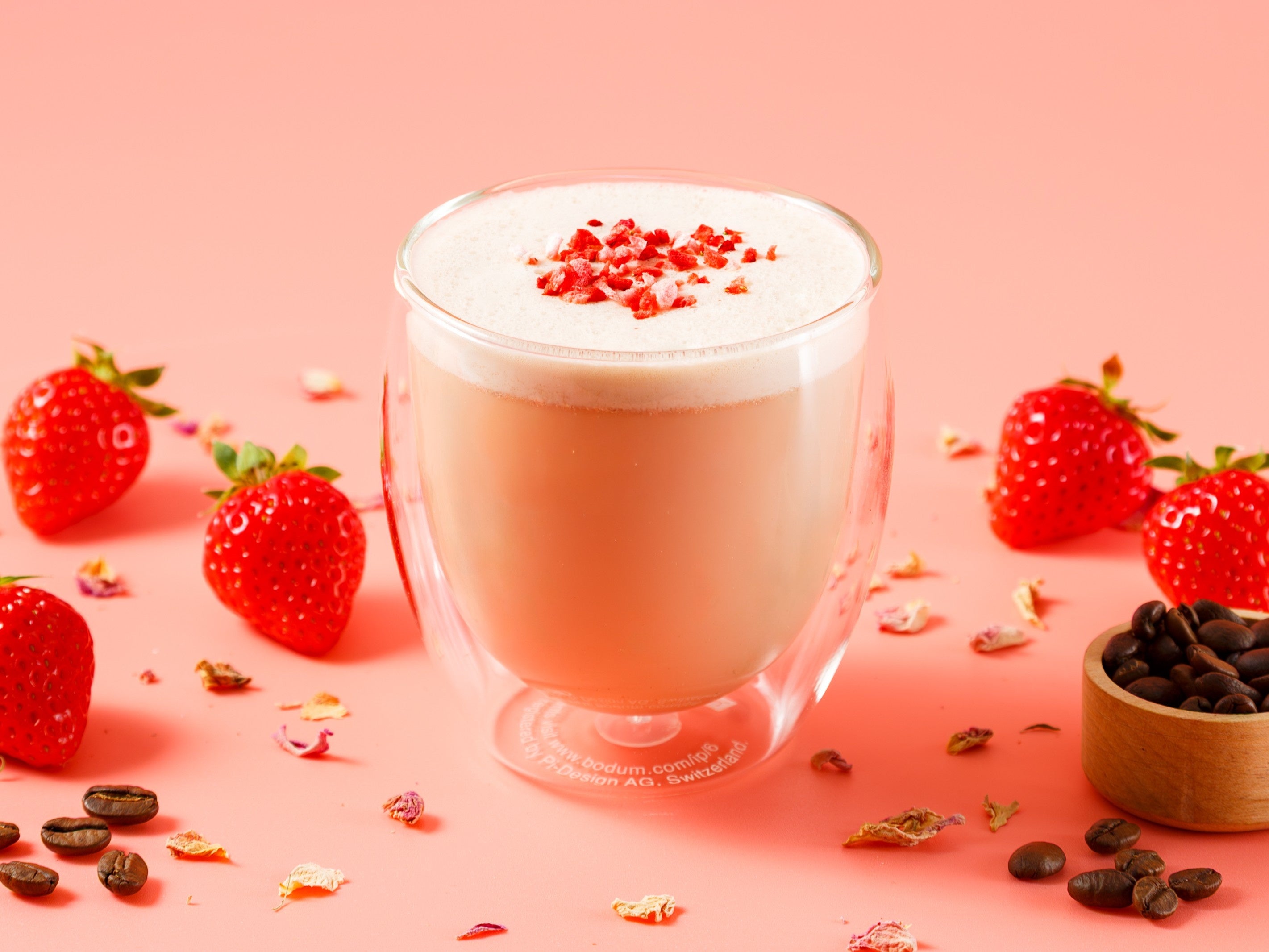 いちごの甘酸っぱさに、コーヒーの香ばしさ、さらに牛乳と練乳をたっぷり合わせたミルキーな「練乳いちごラテ」が新登場。春限定のドリンクは、ほのかなピンク色の見た目とやさしい口当たりで、心まで満たされる一杯です。