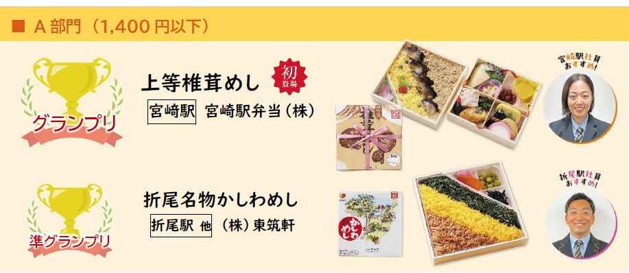 この投票結果により、上位10種類の駅弁が、2026年3月6日・7日の2日間多阪急で開催された「全国有名駅弁とうまいもの大会」特設ブースでの決勝大会に進出し362件のご投票をいただき、グランプリ、準グランプリを獲得したのは、以下各2商品です。