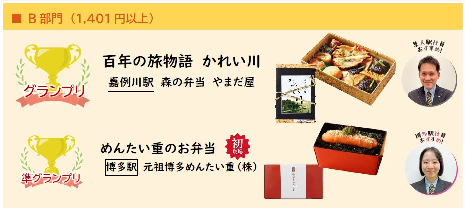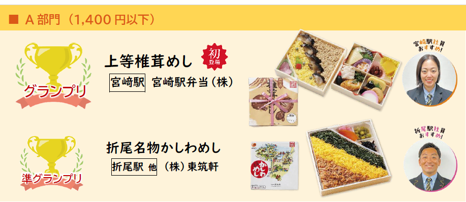 この投票結果により、上位10種類の駅弁が、2026年3月6日・7日の2日間多阪急で開催された「全国有名駅弁とうまいもの大会」特設ブースでの決勝大会に進出し362件のご投票をいただき、グランプリ、準グランプリを獲得したのは、以下各2商品です。