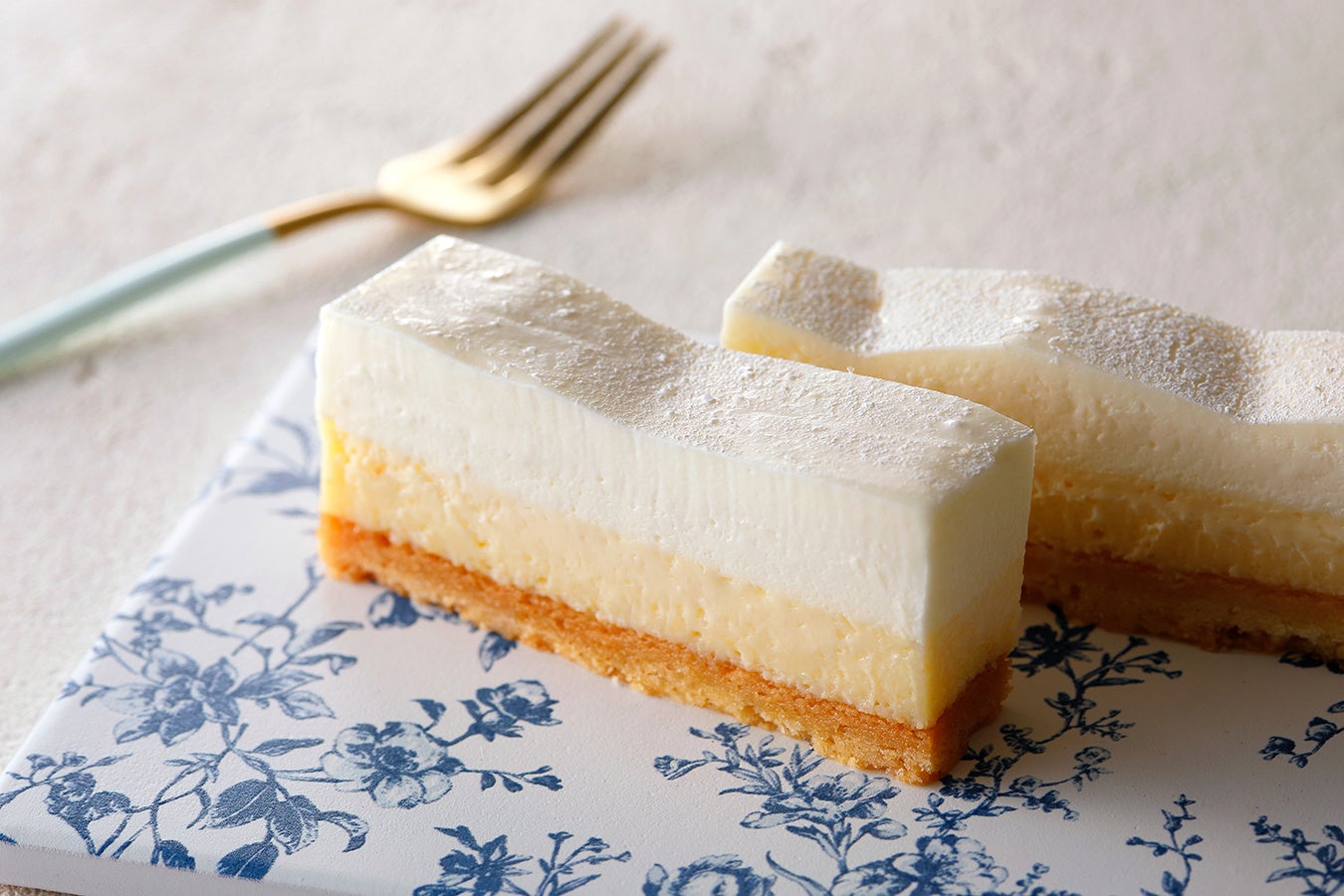 口どけが良く、爽やかな酸味と上品な甘さが特徴のレアチーズケーキと、しっかりとしたコクが特徴のベイクドチーズケーキの二重奏をお愉しみください。