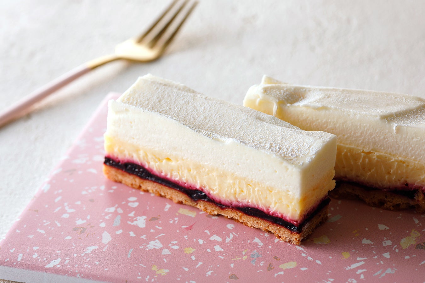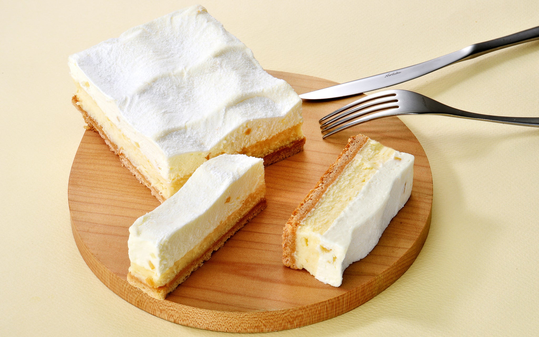 口どけが良く、爽やかな酸味と上品な甘さが特徴のレアチーズケーキと、しっかりとしたコクが特徴のベイクドチーズケーキの二重奏をお愉しみください。