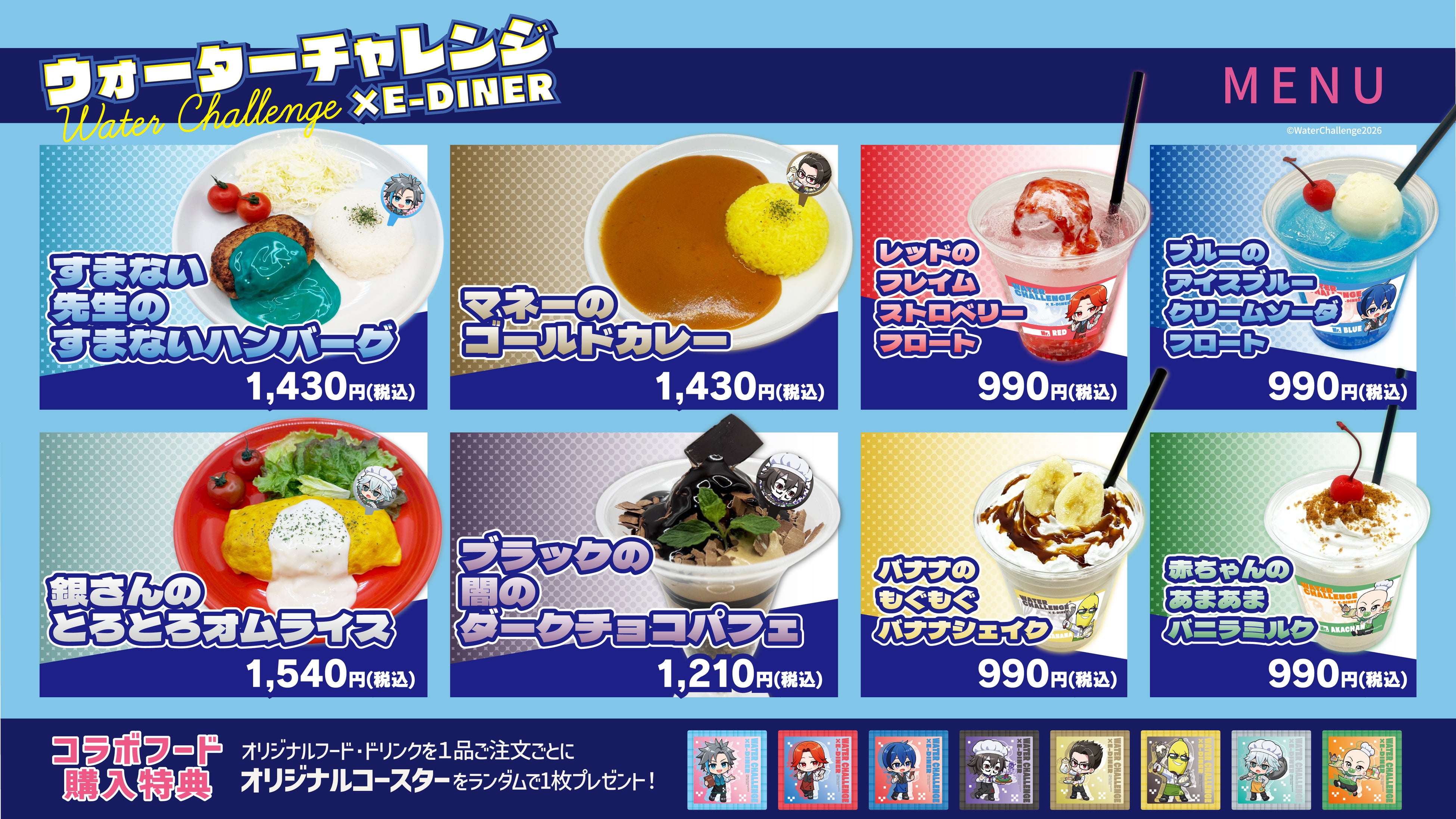 株式会社イーディス(本社:東京都豊島区、代表取締役:森俊平)は、2026年4月1日(水)〜4月19日(日)の期間中、「ウォーターチャレンジ×E-DINER」コラボカフェを開催いたします。