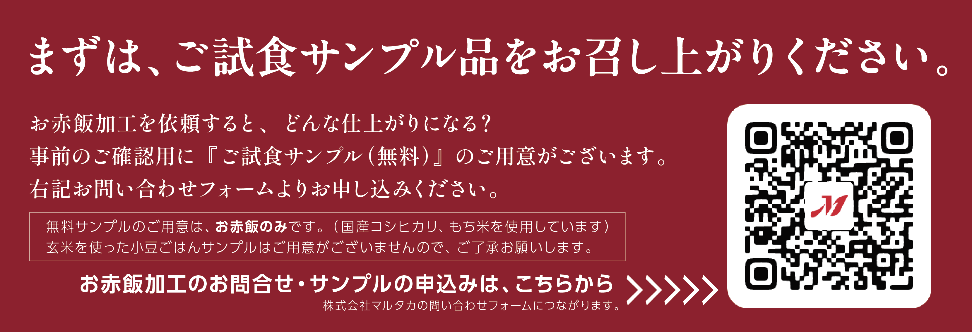 お赤飯加工のお問合せ・サンプルの申込みは、