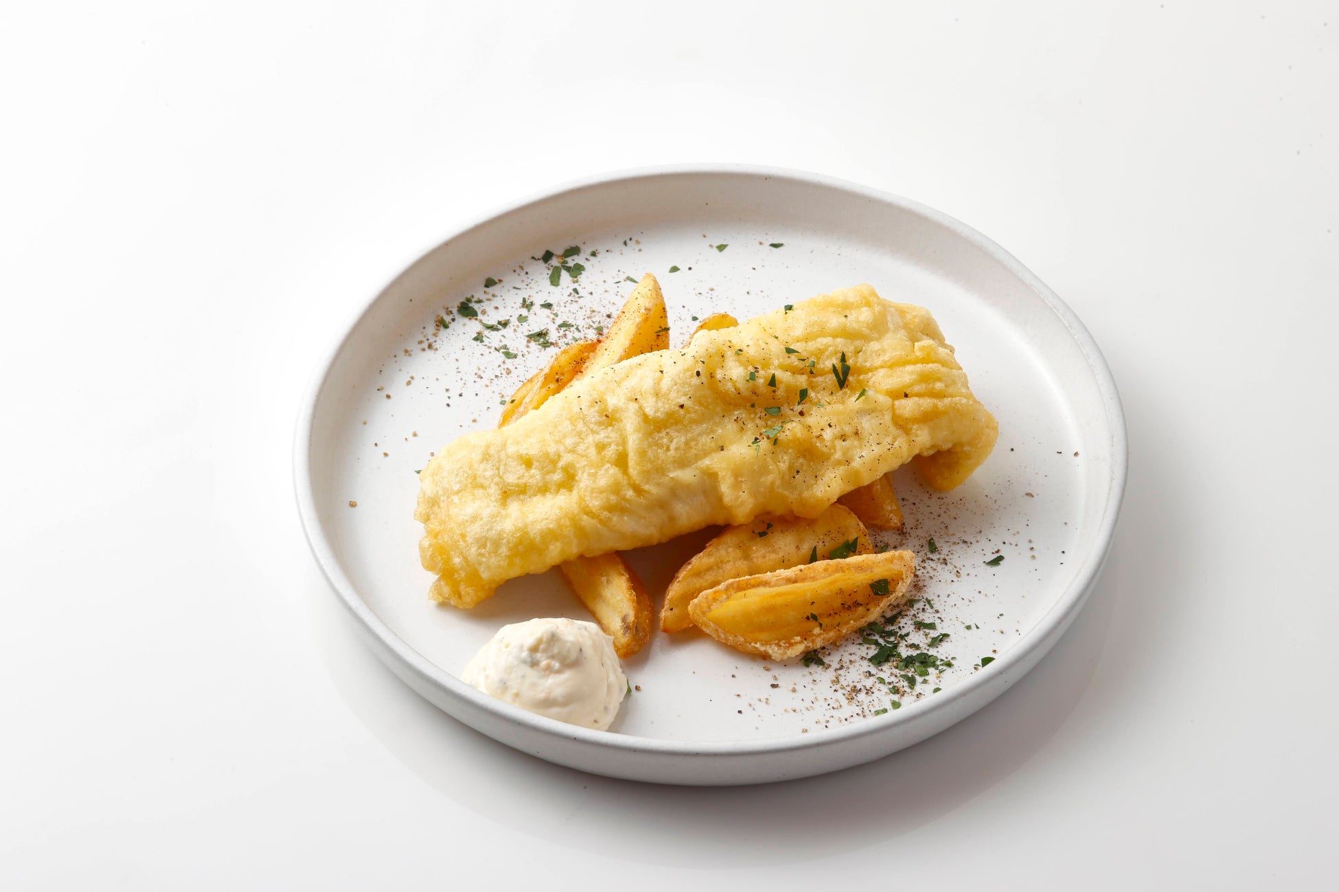 ふわっと柔らかいハモフリットカリカリポテトを添え、ハモのやさしい旨みを楽しめる一皿。