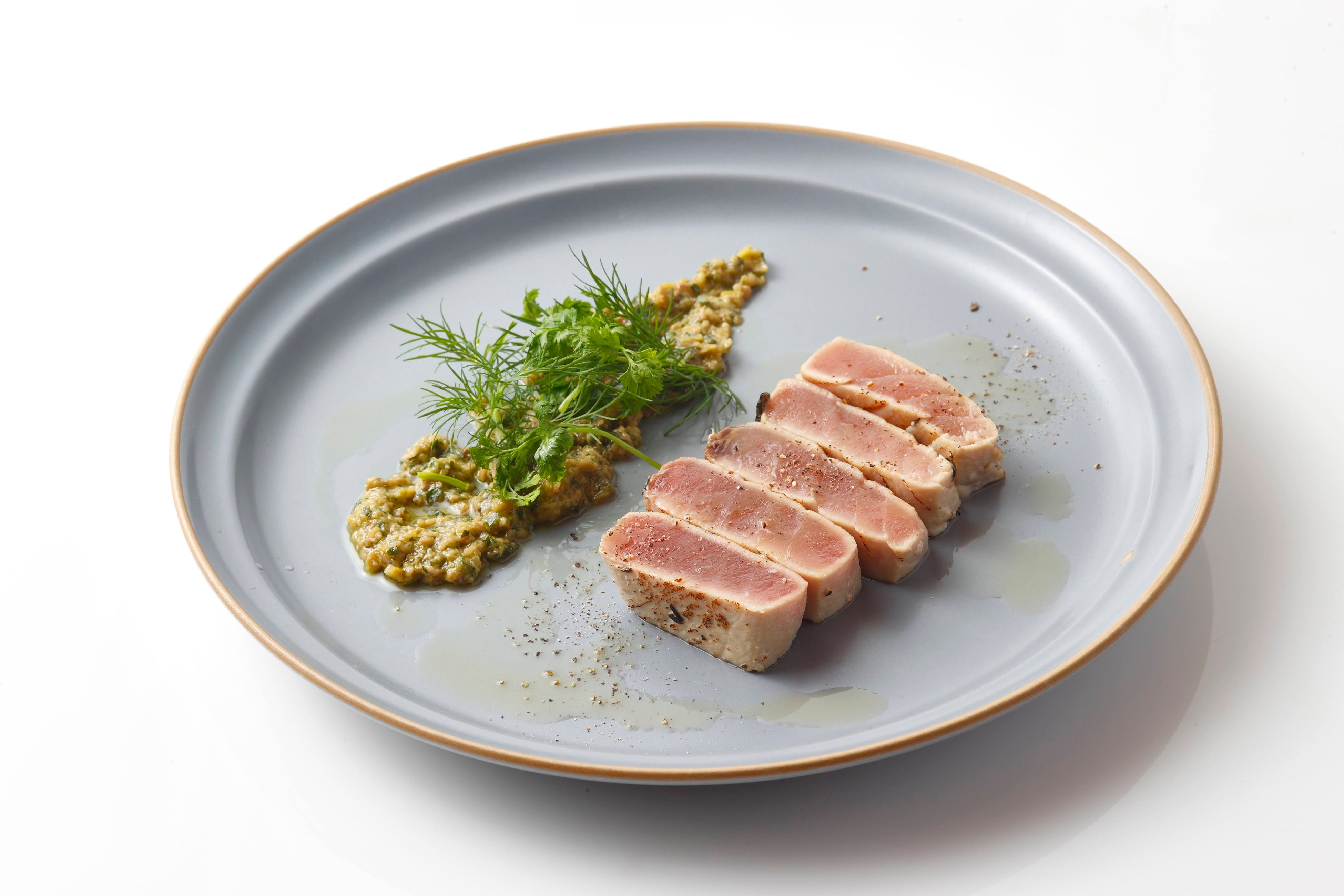 表面を香ばしく焼き上げた本マグロを厚めに切り、旨味としっとりした食感を楽しむタリアータ。