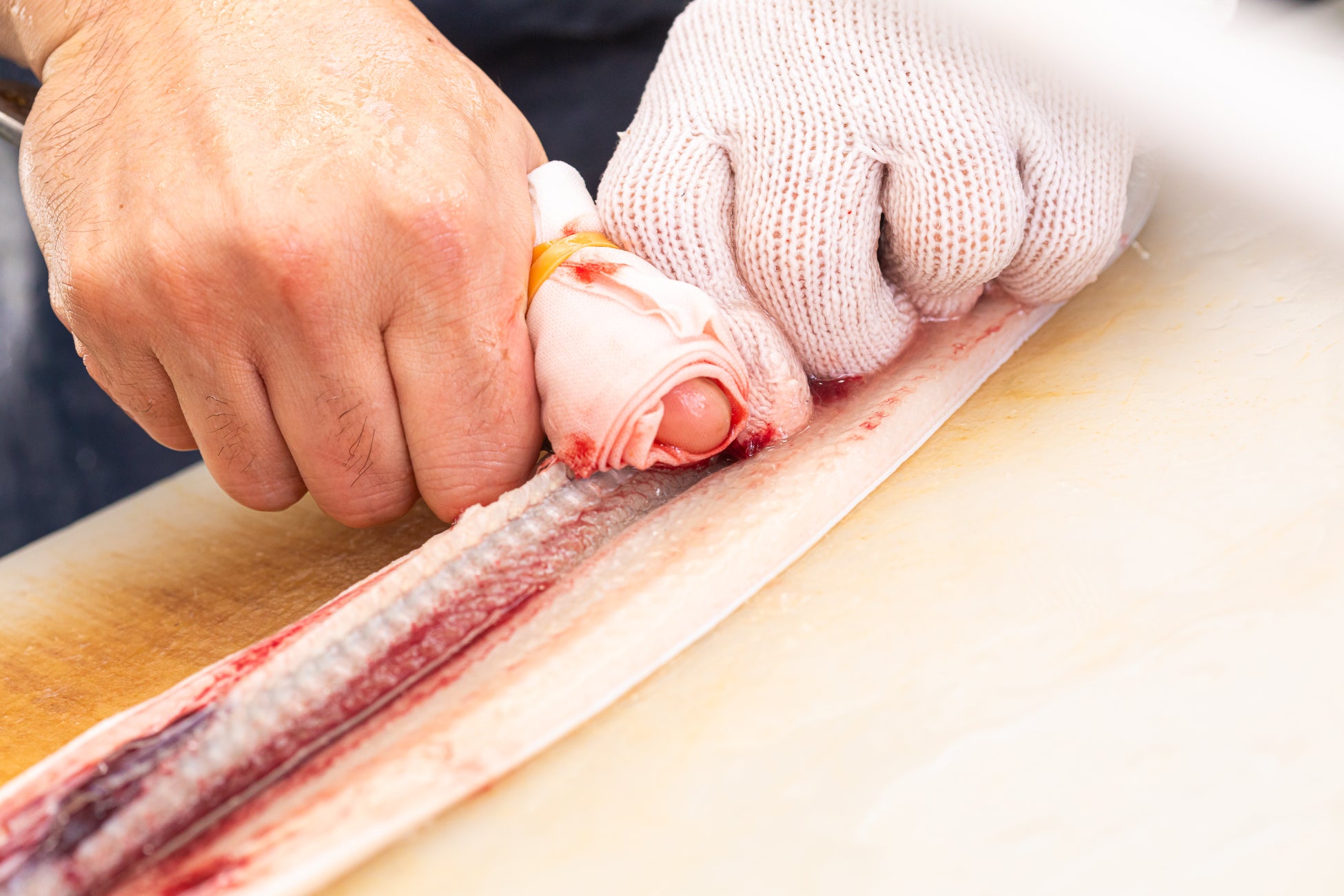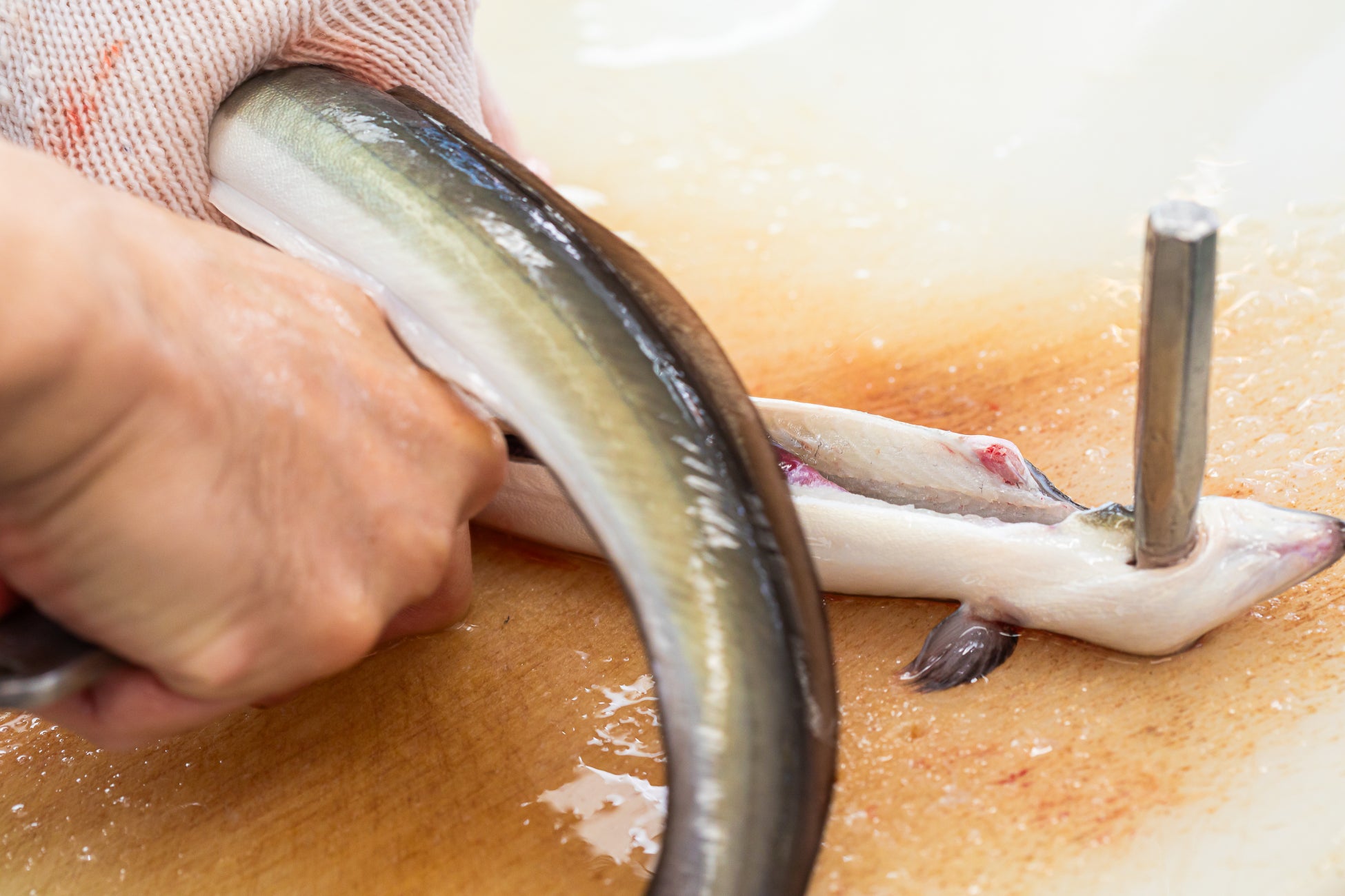 萬鰻亭では活きた鰻を朝に職人が丁寧に捌きます。