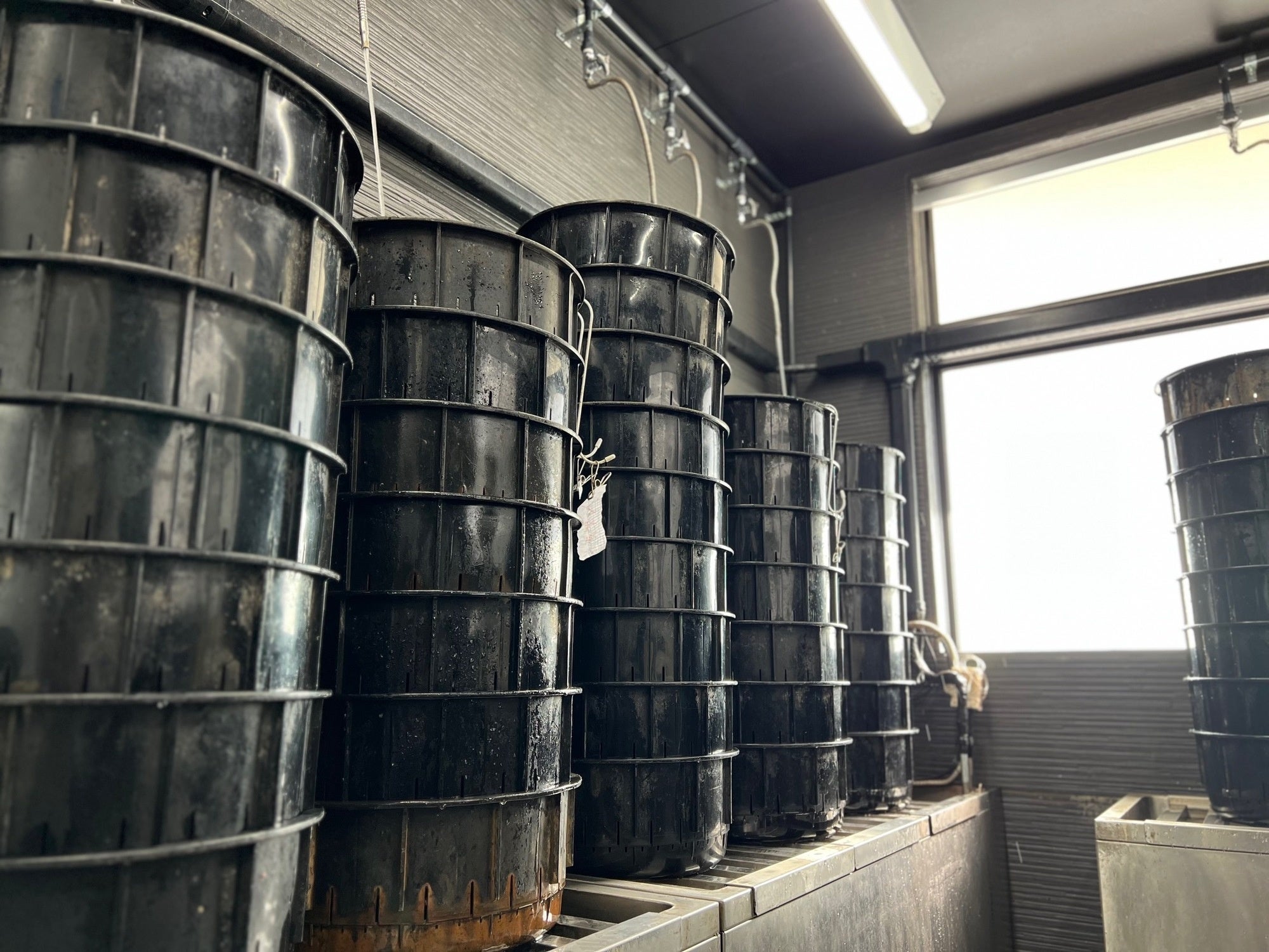 店内には、鰻を水にさらして泥抜きを行う「立て場」を設置。