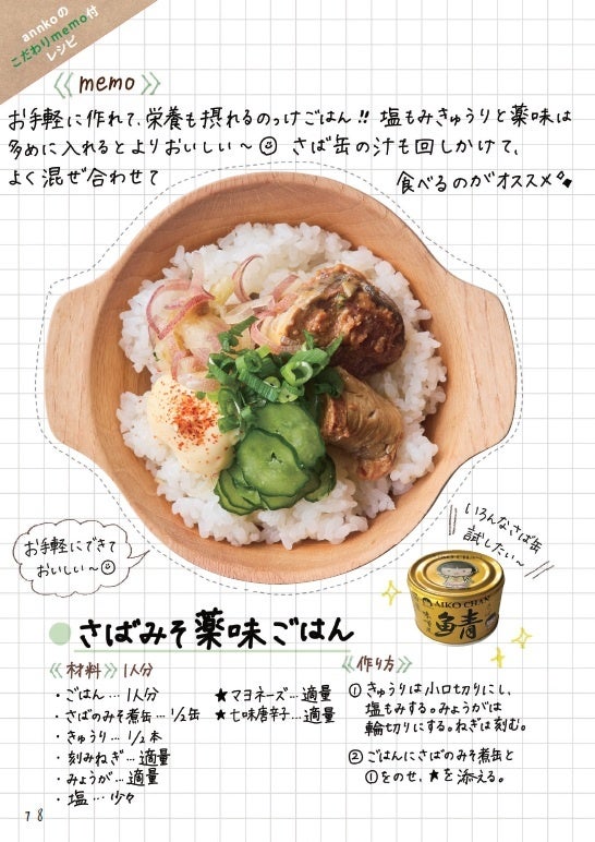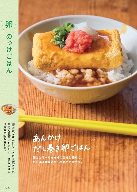 ・あんかけだし巻き卵ごはん ・カルボ風卵かけごはん ・韓国風納豆ごはん ・ツナマヨごはん ・さばみそ薬味ごはん ・豆乳冷や汁ごはん ・まぜまぜにぎりめし