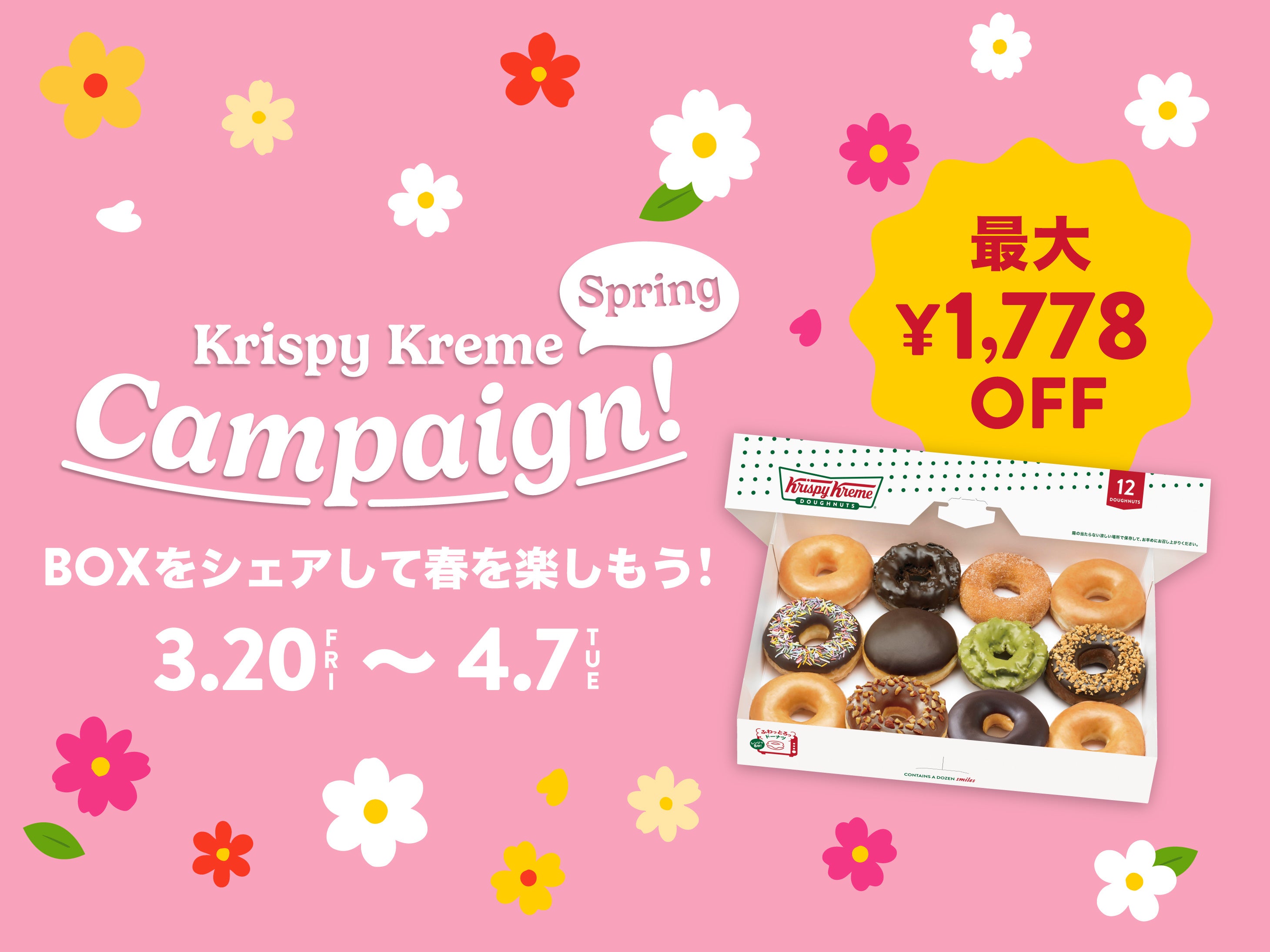 クリスピー・クリーム・ドーナツ・ジャパン株式会社(本社:東京都渋谷区、代表取締役社長:若月 貴子、以下:KKDJ)は、6個以上ご購入いただいた方を対象に、KKDJ公式SNSアカウント(X、Instagram)の指定画面を店頭で提示するだけでドーナツBOXがいつもよりお得になるキャンペーン『Krispy Kreme Spring Campaign』を、2026年3月20日(金)から4月7日(火)までの期間限定で、クリスピー・クリーム・ドーナツ店舗※1 にて実施します。※1 催事及びKKD店舗以外の小売店を除く。