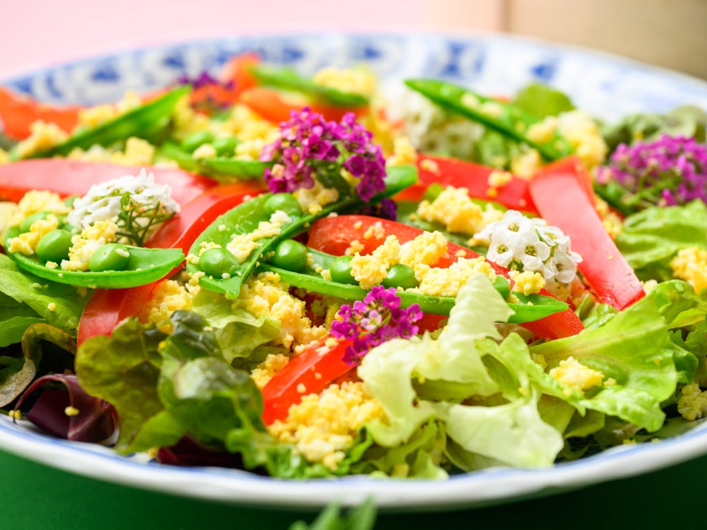 【洋食料理】スナップエンドウを使用した見た目も華やかなミモザサラダ、春の魚介を使用したワインに合うアクアパッツアや、バイキングには定番のローストビーフ(またはビーフステーキ)などをご用意しております。