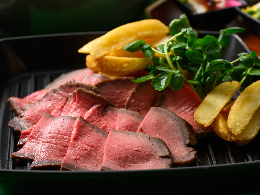 肉料理:牛すね肉の赤ワイン煮込み、ビーフステーキ または ローストビーフ、鶏もも肉の照り焼き~木の芽の香り~