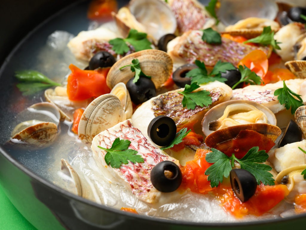 【洋食料理】スナップエンドウを使用した見た目も華やかなミモザサラダ、春の魚介を使用したワインに合うアクアパッツアや、バイキングには定番のローストビーフ(またはビーフステーキ)などをご用意しております。