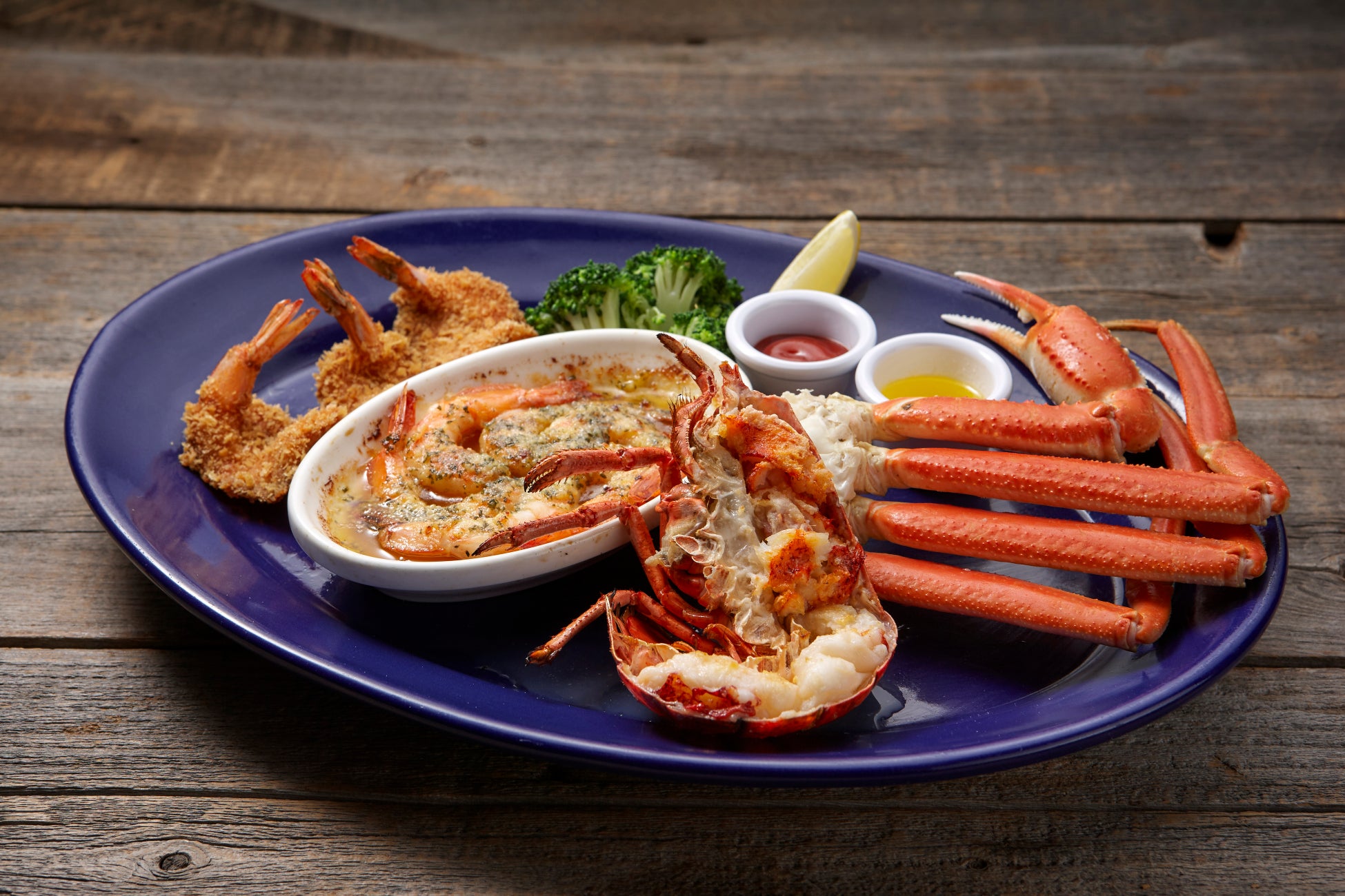 ロブスターグリルやズワイガニ、ガーリックシュリンプ、シュリンプフライの4種を盛り合わせた“究極”のワンプレートです。