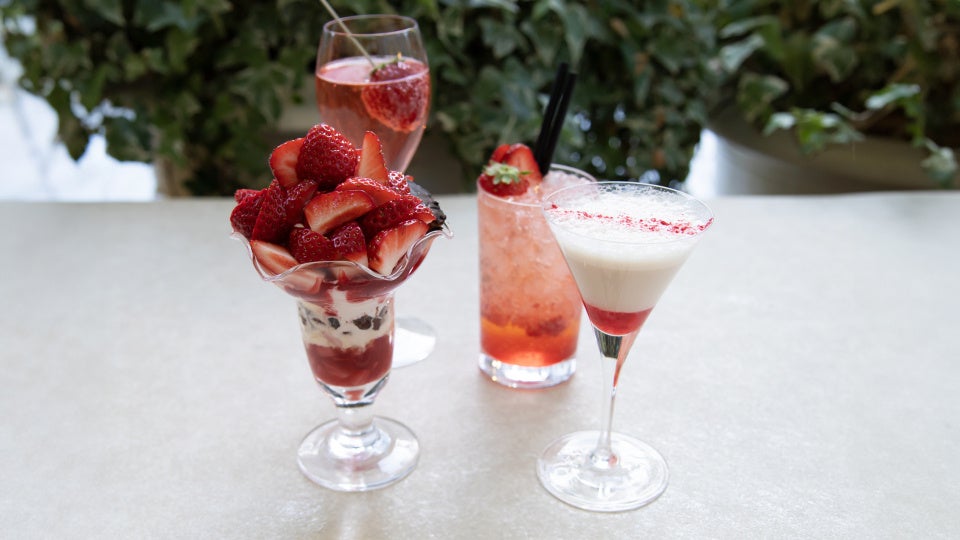 おしゃれな食前酒。イチゴとロゼスパークリングワイン。