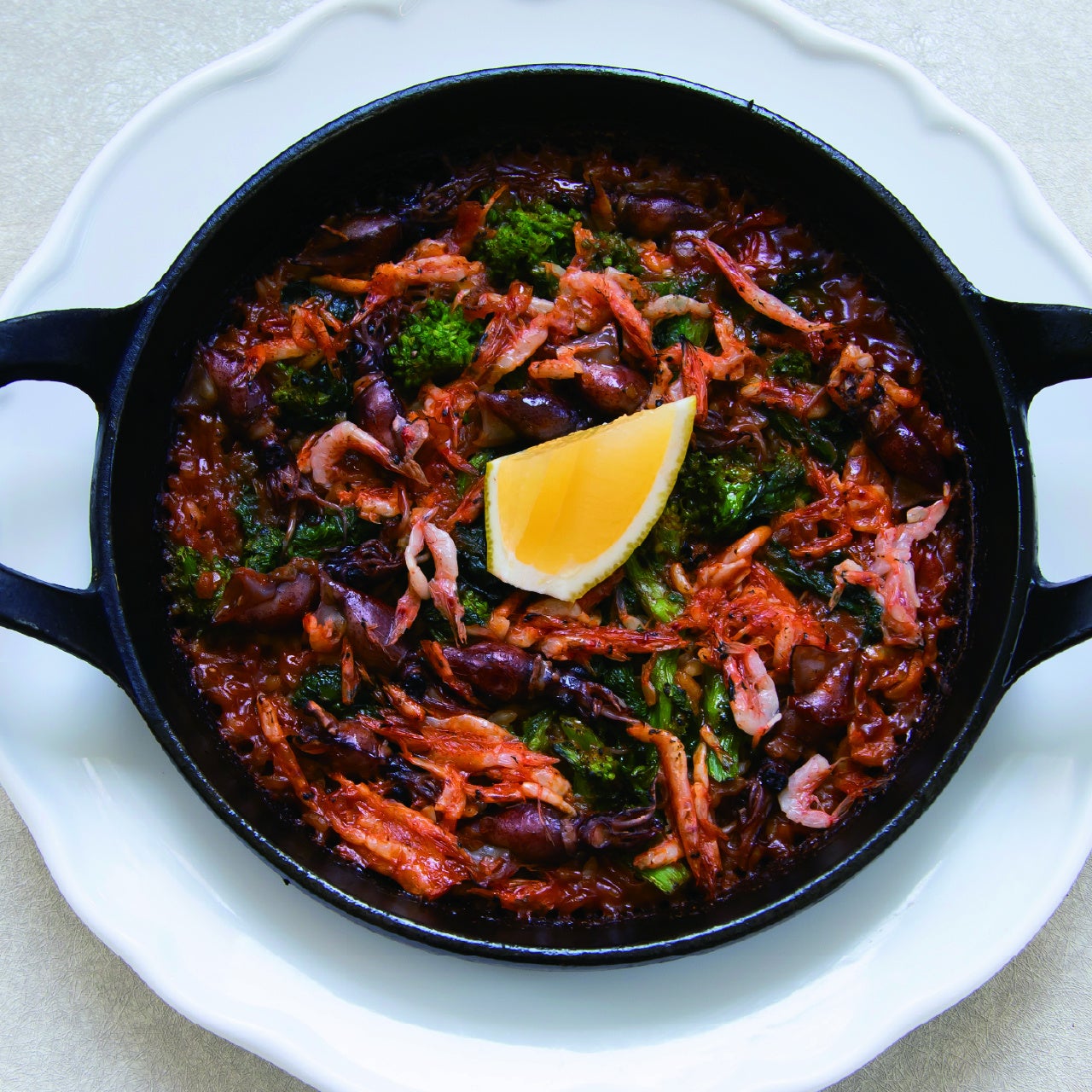 魚介のうまみがギュッとつまった春いっぱいのパエリア。