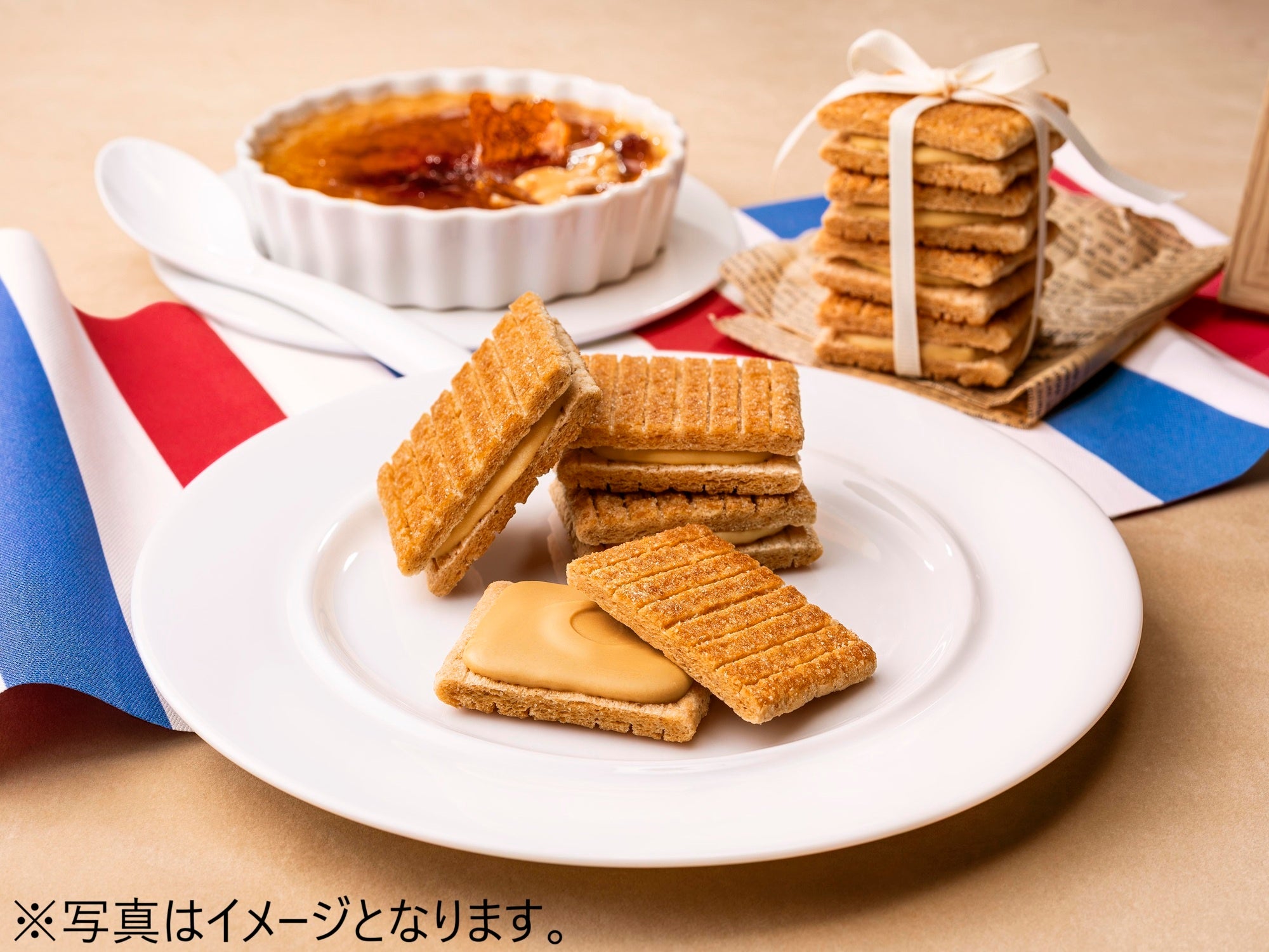 パリッと高温でブリュレしたバターキャラメル生地でサンドしました。