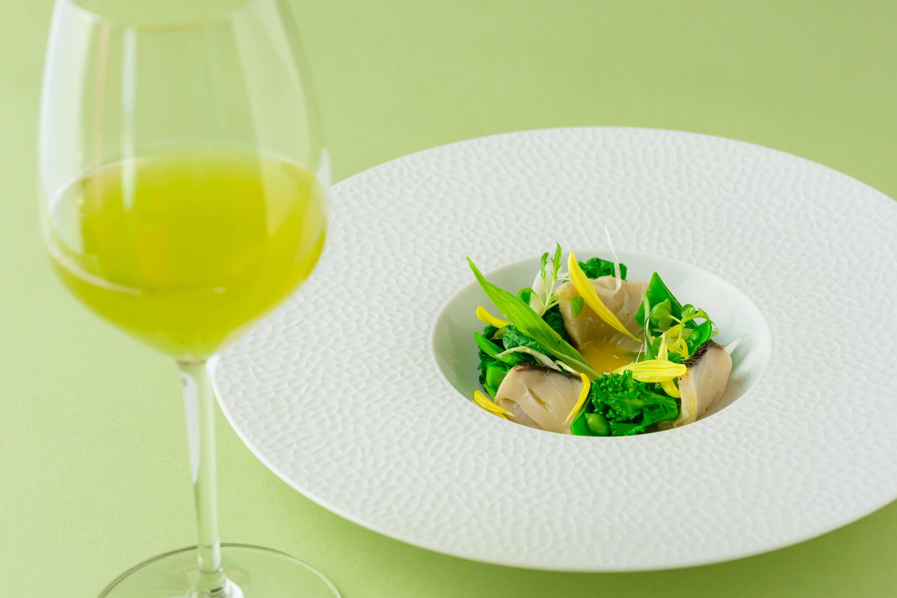 【メニュー】アミューズからデザートまでのスペシャルコースメニュー計5品と5種のペアリングドリンク