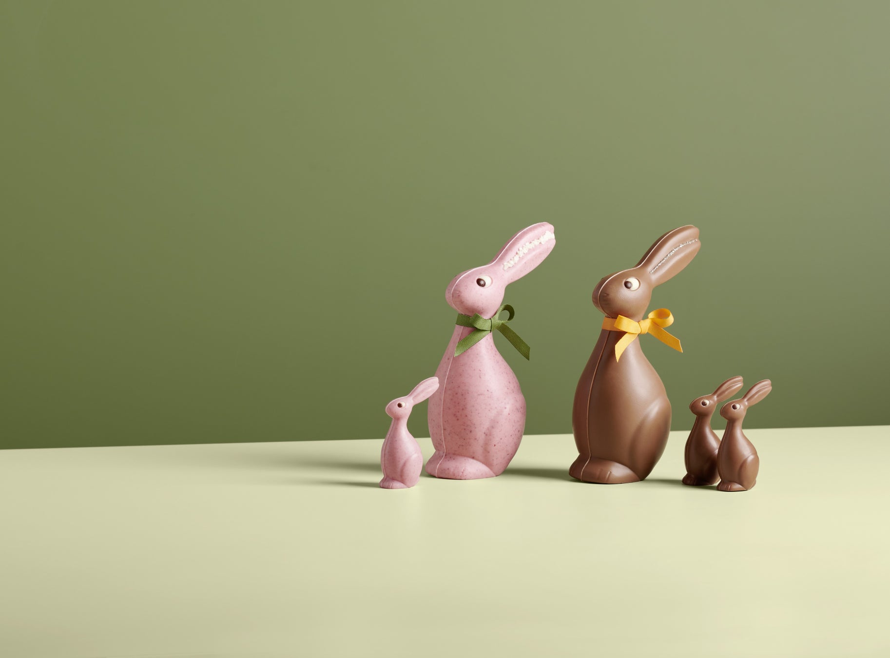 ミルク、ダーク、ホワイト、アーモンド、ラズベリーなど豊富なフレーバーとサイズのバニーは、ご家族やお友達へのギフトにもぴったりのアイテムです。
