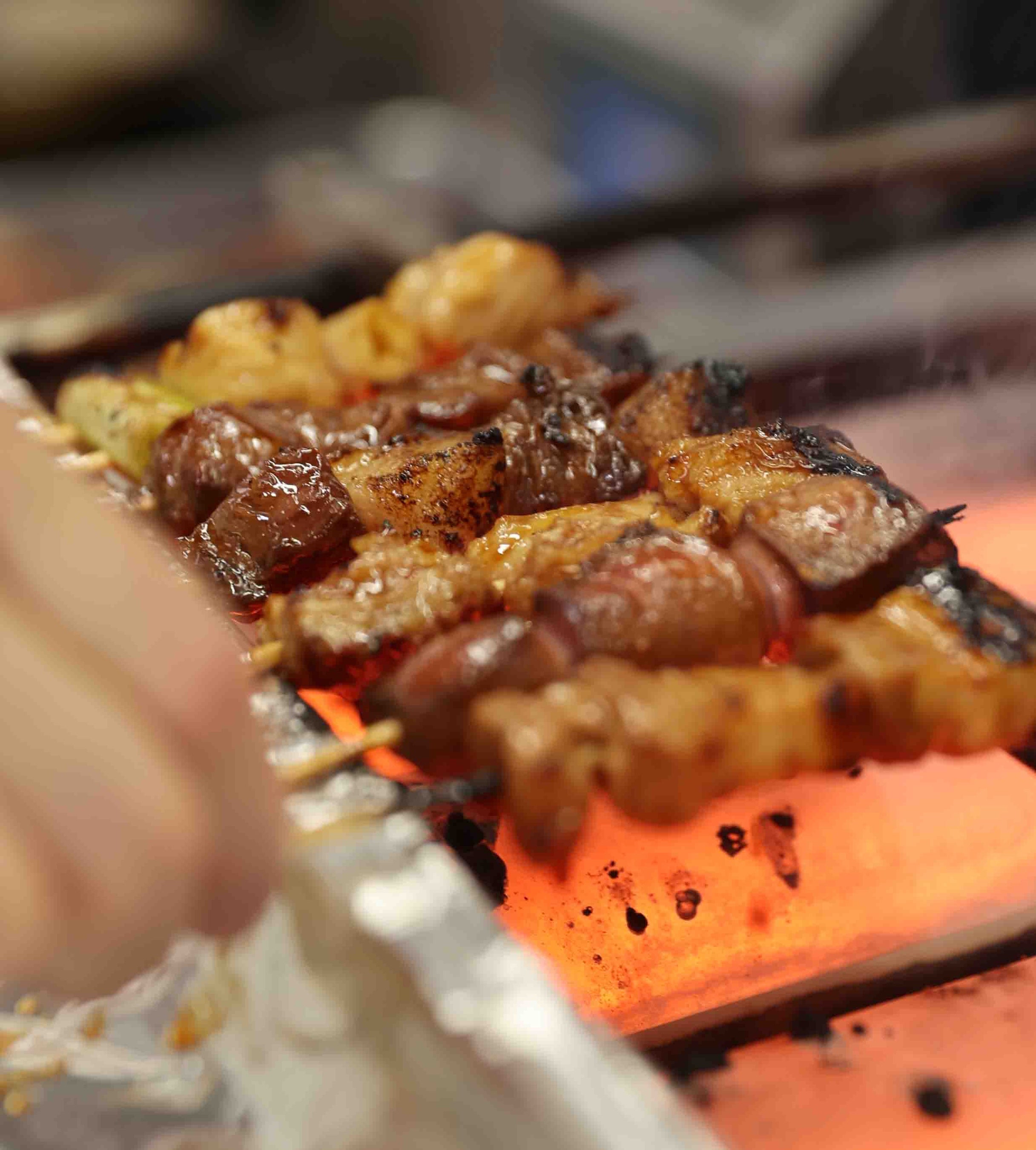 「もつ焼 串かつ あさちゃん」では、毎日直送される新鮮な豚モツや鶏肉を使用し、一本一本丁寧に