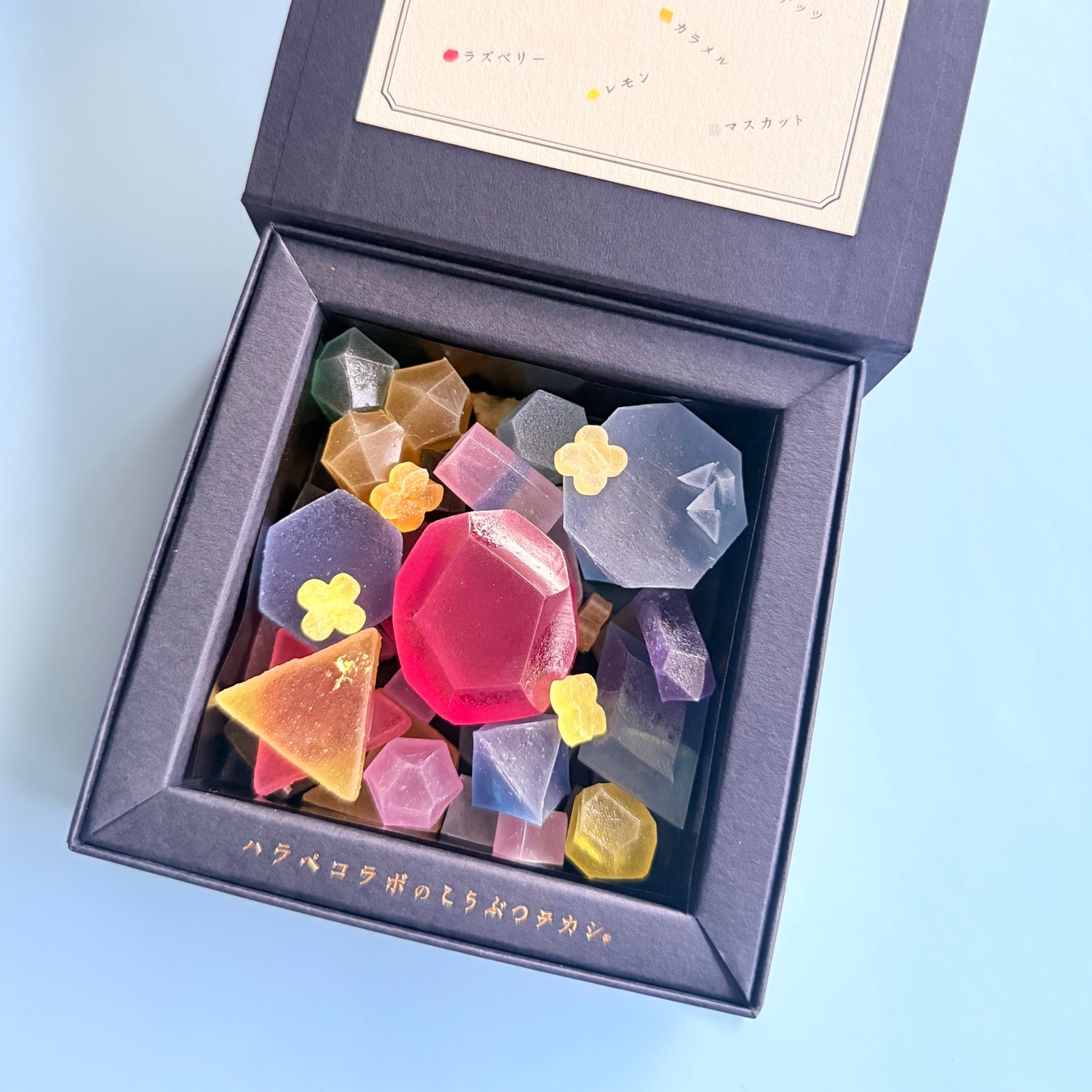 福岡からものづくりを発信しているハラペコラボが、九州沖縄の美味しいをお菓子で届けたいと開発した、濃厚な味が自慢の琥珀糖。シーグラスのような風合いが魅力です。