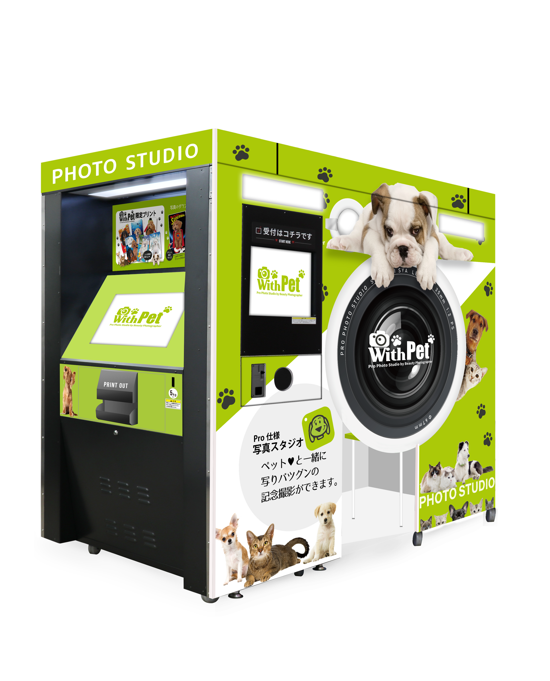 ドッグランの受付棟にはペット専用のプリクラ機『With Pet』を導入します。