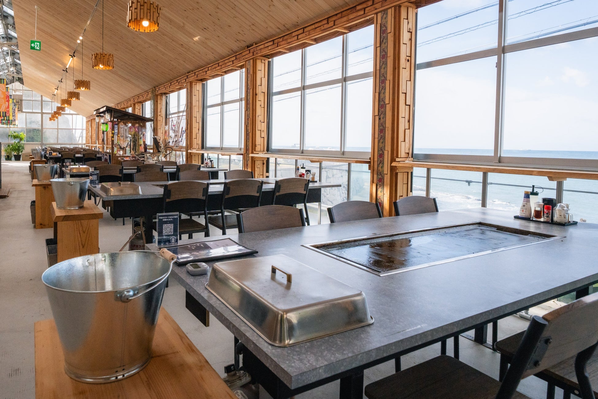 空調が完備されたキャビンBBQエリアでは、卓上の鉄板で焼いて楽しむ「鉄板BBQ」を楽しめます。