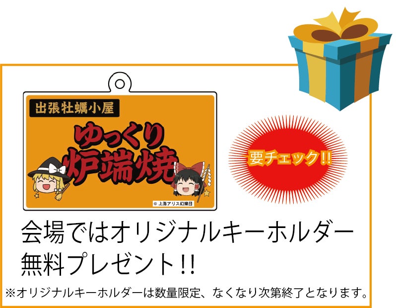 「ゆっくり炉端焼き」は、 “ゆっくり” キャラクターをモチーフにした、家族でも楽しめるエンタメ型出張牡蠣小屋です。 30種類を超える豊富なメニューは大人から子供まで楽しめる海鮮BBQになります。ショッピングモールでの買い物ついでや、週末のお出かけ先としても気軽に立ち寄れるイベントです。