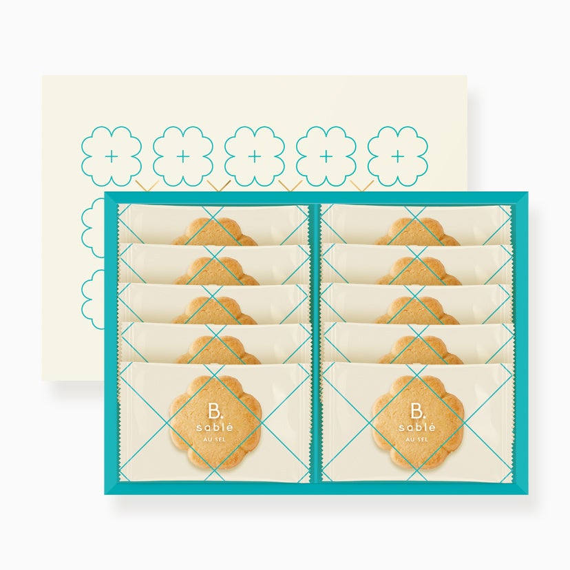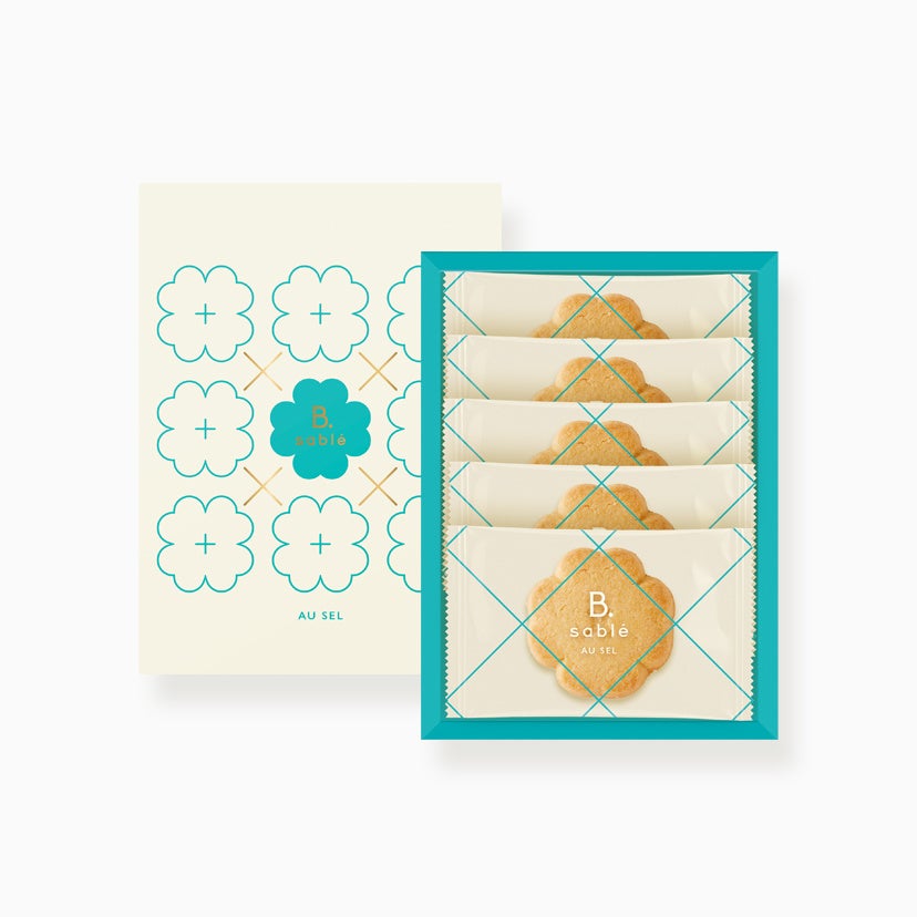 バターの芳醇なコクと香り、上品な甘さのサブレ生地に、海老せんべい〈ゆかり〉とフランス産ゲランドの塩を加えてさっくりと焼き上げた〈B.sablé〉は、伝統の海老せんべい〈ゆかり〉のおいしさをもっと身近に、もっと日常に、もっとたくさんのシーンで楽しんでほしいという想いから誕生した、坂角ならではのスイーツです。
