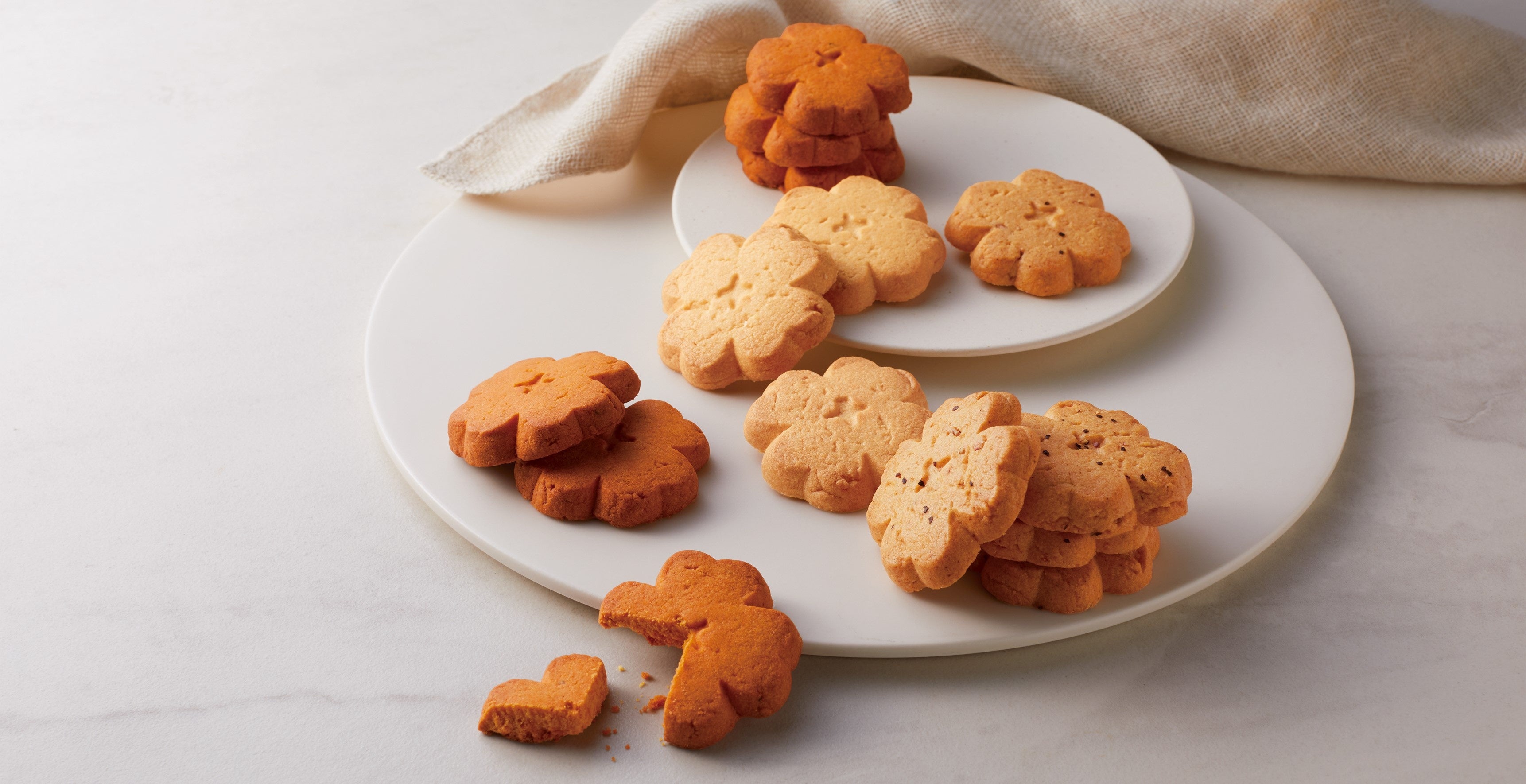 バターの芳醇なコクと香り、上品な甘さのサブレ生地に、海老せんべい〈ゆかり〉とフランス産ゲランドの塩を加えてさっくりと焼き上げた〈B.sablé〉は、伝統の海老せんべい〈ゆかり〉のおいしさをもっと身近に、もっと日常に、もっとたくさんのシーンで楽しんでほしいという想いから誕生した、坂角ならではのスイーツです。