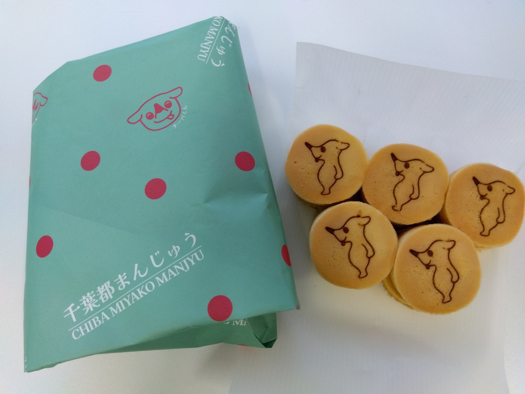白あんがたっぷりの、チーバくん焼印入りのミニまんじゅうです。