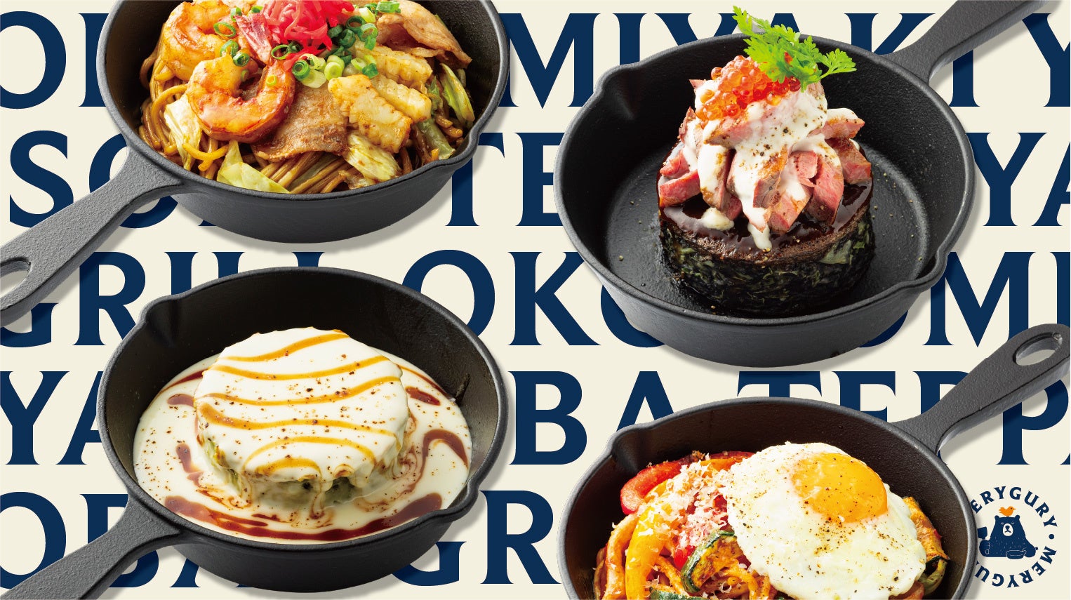 セルクルを用いた独自製法でじっくり丁寧に焼き上げる、MERYGURY(メリグリ)ならではの”ふわトロ”お好み焼きや、50年続く老舗麺を使用した”もちモチ”焼きそば——お食事のひとときを「ハッピーに過ごしてもらいたい!」そんな思いから、見た目も鮮やかなお好み焼きや焼きそばをはじめ、おいしいメニューを開発しました。