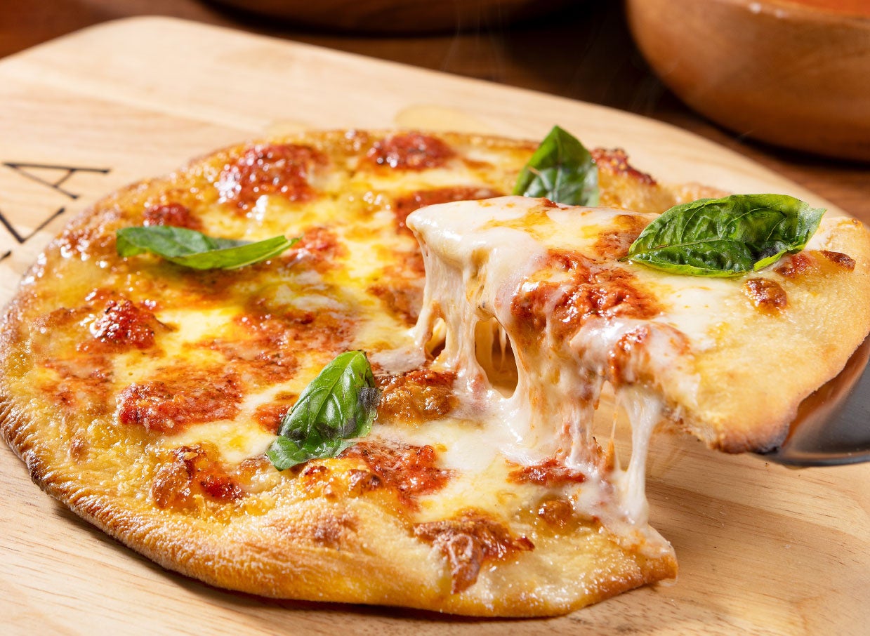 自由な発想で「おいしさ」を追求した、モダンニューヨークスタイルの本格マルゲリータピザ。チーズとソースを上下逆さまにして焼き上げているので、いままでにないソースとチーズの一体感をお楽しみいただけます。小麦粉の配合からこだわった長時間低温熟成の生地は、甘さがありながら香ばしく、軽く食べ続けられる食感が特徴。ビールに合うこと間違いなし!