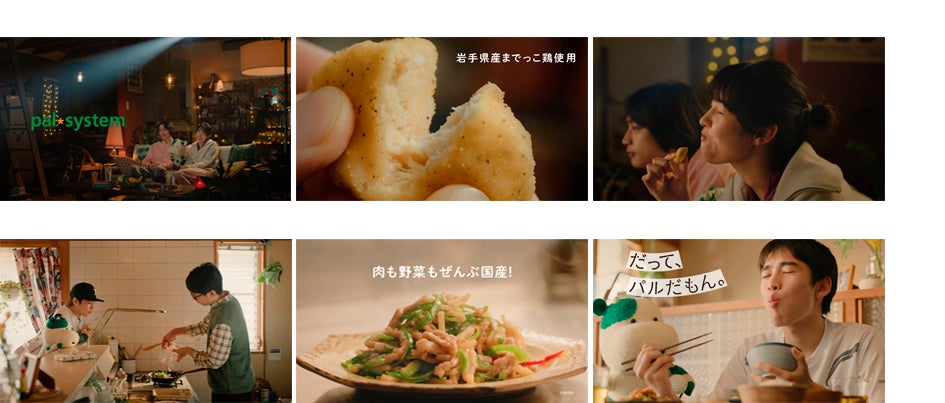 TVCMでは「までっこ鶏チキンナゲット」「お料理セット」を取り上げます。パルシステム公式キャラクター「こんせんくん」が暮らしの中で、「おいしいは、つながってる。だって、パルだもん。」のメッセージで食の安心感とサステナブルな取り組みを伝えています。