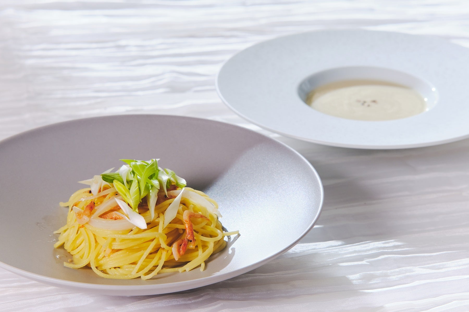 桜海老と新玉ねぎのパスタ/サルシフィーのポタージュ 1,500円
